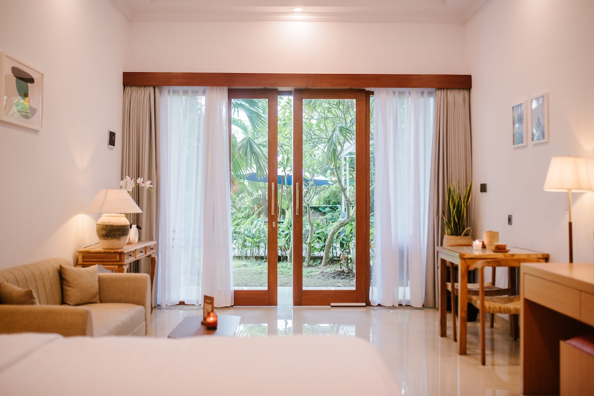 Vistas a la piscina privada y al campo de arroz • Habitación elegante con cama tamaño king y vistas al campo de arroz • Baño privado con todas las comodidades, zapatillas y secador de pelo • Cocina totalmente equipada para cocinar en casa. • Tu propia piscina privada + acceso a la piscina compartida de 3×8 m con tumbonas y sombrillas • Gran cenador principal en la zona común • Wifi de 300 Mbps para trabajar y ver vídeos en streaming • Limpieza diaria con toallas y sábanas frescas • Servicio de conserjería para alquiler de escúteres, reservas de spa y excursiones locales • PS5, Netflix a petición