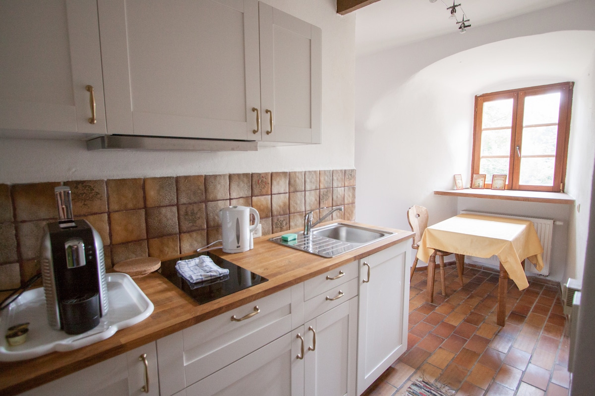 ¿Buscas un lugar para tomarte un descanso o trabajar sin ser molestado? ¡Entonces estás/estáis en el lugar correcto! Rodeados de bosques y arroyos, podréis disfrutar de la vida rural en medio de un paisaje natural de excepcional belleza. Justo en la hermosa propiedad comienza un sendero forestal, que es ideal para caminar y correr. Todas las cosas para la vida diaria se encuentran a 5 minutos en coche o a pie.