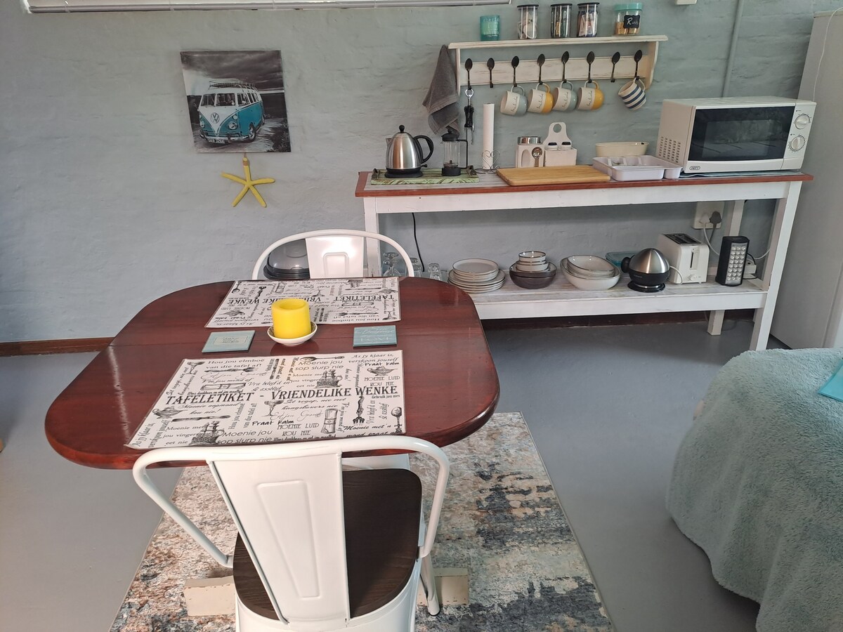 Secluded Garden Cottage in Vredendal, little town on the N7 in the heart of the Wine lands, Matzikama mountains and nearby West Coast beach. Stylish cozy Studio Cottage equipped with all the necessities for a comfortable and relaxing stay. Charming courtyard for Alfresco dining. Safe parking on premises, beautiful braai room, with outdoor kitchen & pool. Close to coffee shops, restaurants & town. Your home from home.