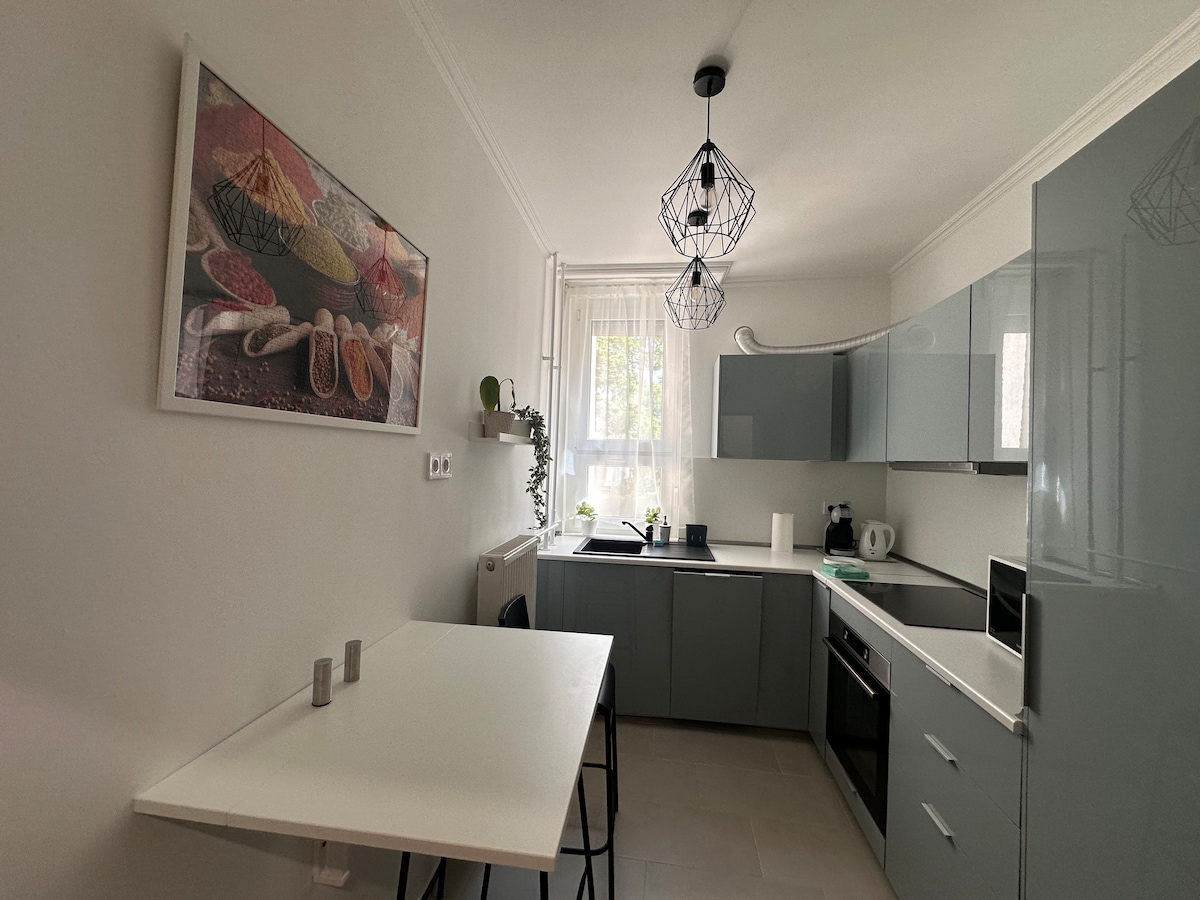 This pleasant little apartment is located in the center of Debrecen in a listed building. A complete renovation took place in 2024. Thanks to the central location, all attractions are a few steps away, and the best restaurants, bars, theaters, and tram stops are also within easy reach. The bustling downtown atmosphere is counterbalanced by the peaceful, quiet inner courtyard view. Fast wifi and Netflix are available for work and relaxation.Not just a place to stay, but a local guide to help you.