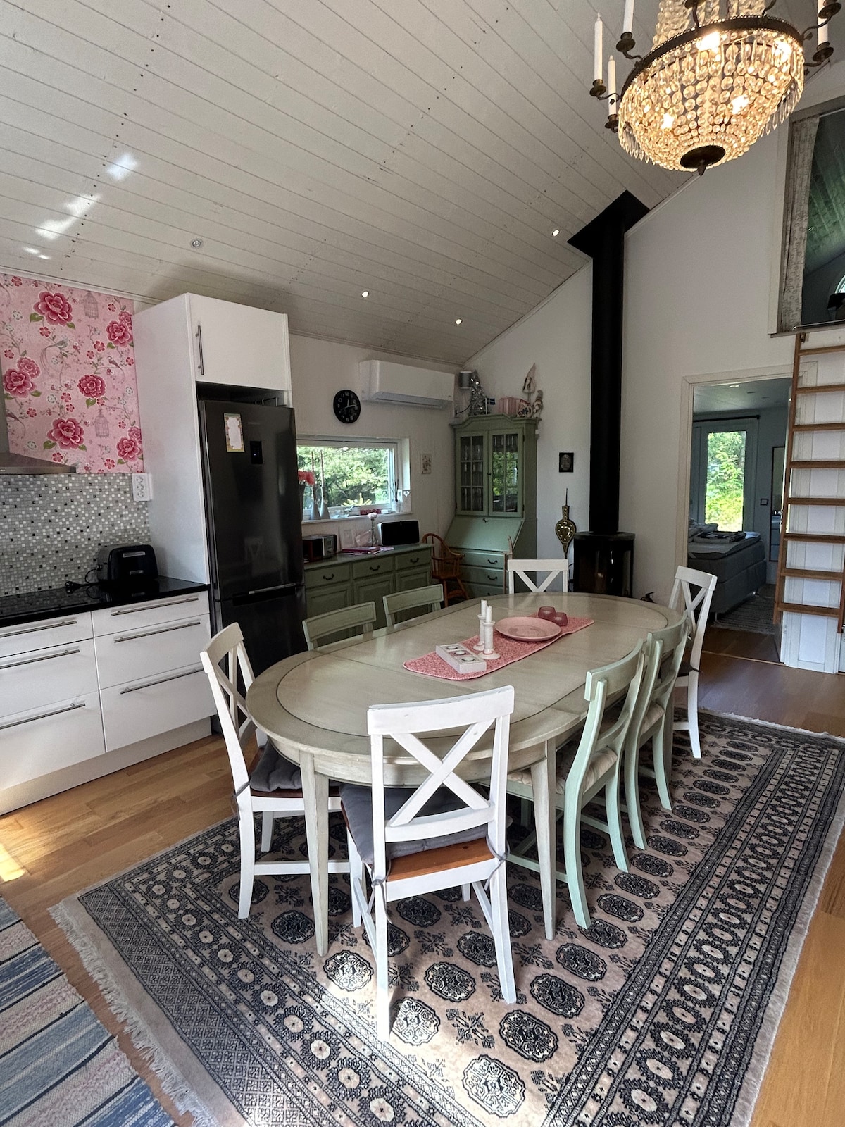 Nuestro escondite en Sund, a las afueras de Trosa, es tranquilo y está completamente fuera de la vista en una colina con vistas al lago Sillen. Encontrarás tres patios a diferentes niveles orientados al sur. Debajo de la casa hay un lugar para nadar y pescar. El muelle se comparte con otras cinco casas y también hay una piscina que pertenece a la asociación a poca distancia a pie y que está abierta durante el verano. Para los curiosos, mira en Instagram: PipershouseSweden. A menudo hay perros en la casa, por lo que verás camas para perros.🌸