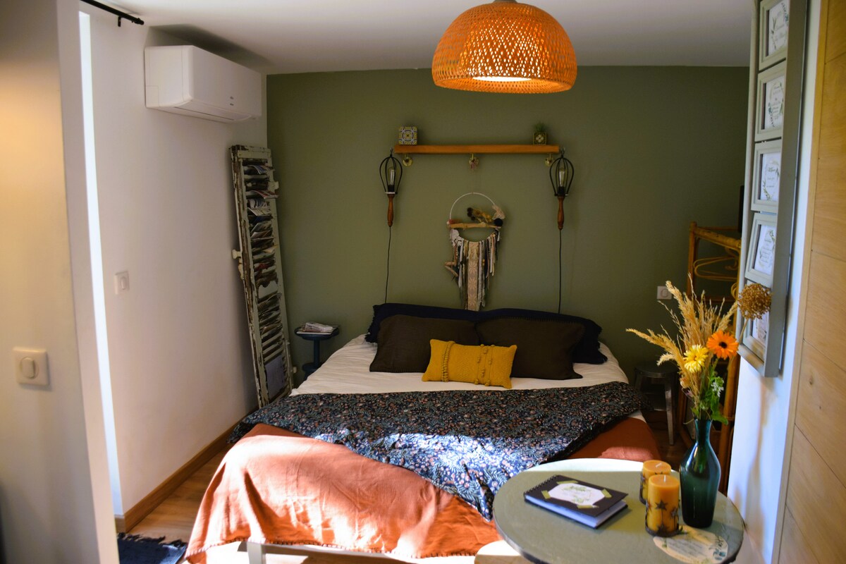 Se proporcionan sábanas, toallas, gel de ducha, champú y leña para la estufa. Cama de 160x200. Wifi de fibra, TV, aire acondicionado, cocina equipada, vajilla, terraza, zona de teletrabajo, refugio seguro para bicicletas. A 2 km del centro de la ciudad de Nyons, estacionamiento privado, acceso directo a senderismo, servicio de transporte gratuito a 50 m.