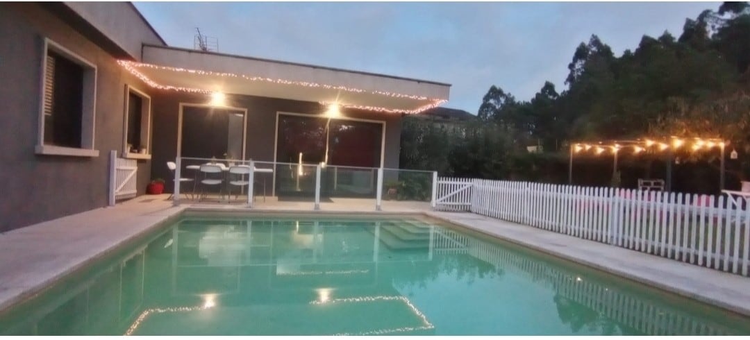Habitaciones con baño para no hacer colas y piscina privada en la Ría de Vigo, Pontevedra- Ideal para familias y grupos. ¿Buscas tranquilidad, naturaleza y comodidad cerca del mar? Nuestra casa es perfecta para una escapada en grupo o en familia en plena Ria de Vigo. Capacidad 8 personas. Ubicación privilegiada. Estamos en una zona tranquila, rodeada de naturaleza y a pocos minutos de las playas y de las ciudades como Vigo y Pontevedra. Rutas de senderismo, miradores y pueblos con encanto.