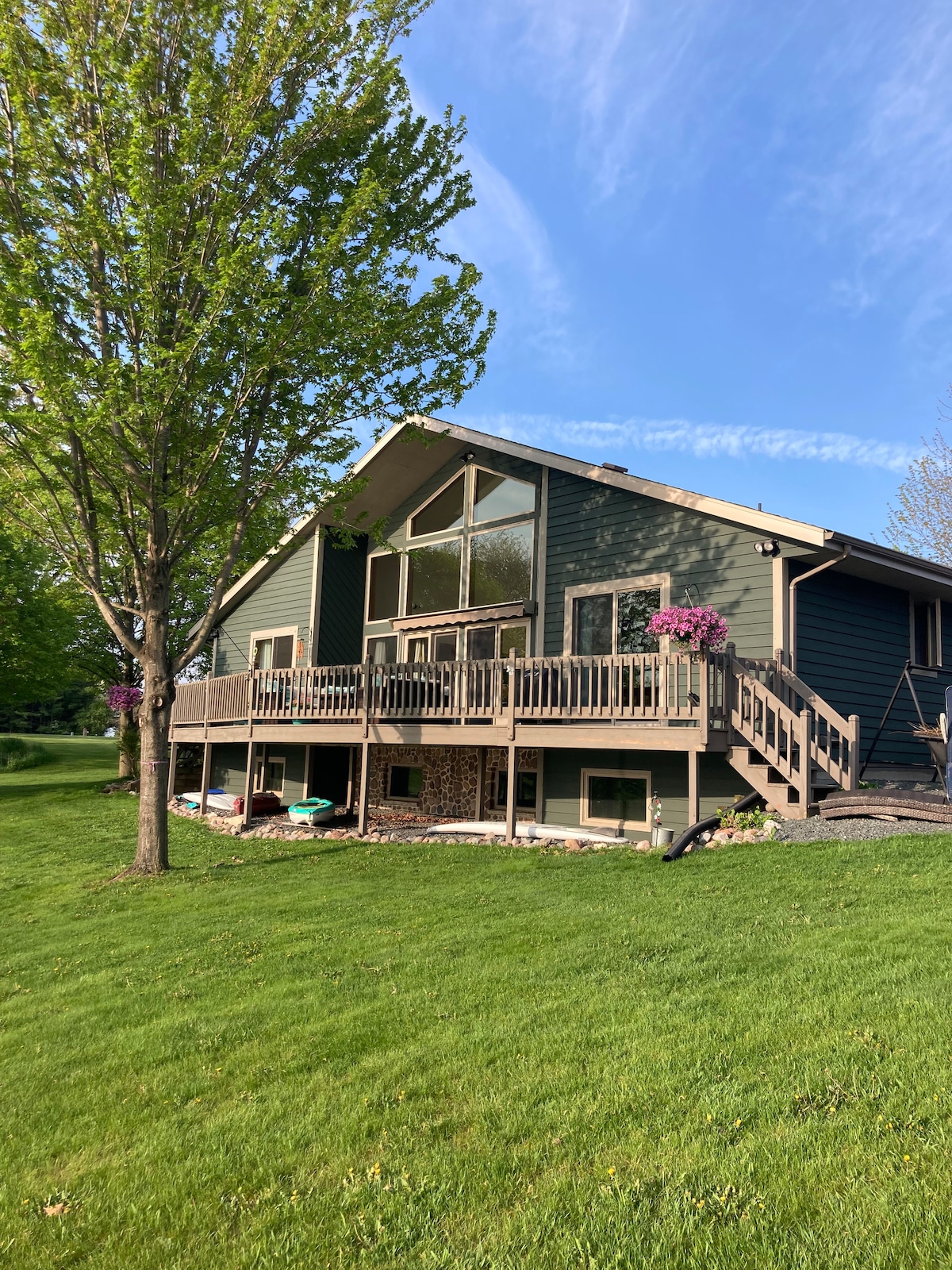 Retiro familiar frente al lago en Little Green Lake: ¡tu escapada perfecta para pescar, hacer kayak, navegar y nadar! Vida de lago recreativa completa con tu propio muelle privado. Cómodo embarcadero a menos de una milla de distancia. A poca distancia en barco o coche del acceso a la playa, bar y restaurante. ¡Spa y golf a menos de 15 minutos en coche para la máxima relajación y diversión! Alquiler de barcos disponible en Sunny Day boat rental. El alquiler no está relacionado con nuestra cabaña, pero traerán un barco al muelle de la casa de alquiler.