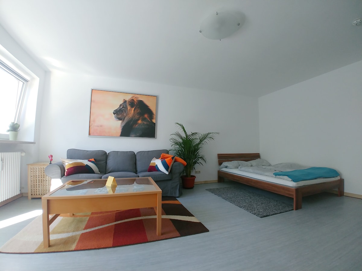 Ático muy acogedor con cocina propia, baño, sala de estar, dormitorio (33 m²) con televisión vía satélite, vistas a los tejados (segunda planta) de la tranquila zona residencial de Ramersdorf-Perlach, en el sureste de Múnich. En verano, mi pequeño jardín es ideal para relajarse/comer al aire libre. Vivirá conmigo y mi pequeño perro en una casa adosada, el ático se puede cerrar con llave. En la cocina no hay conexión de agua, pero en el baño hay un fregadero para los platos.