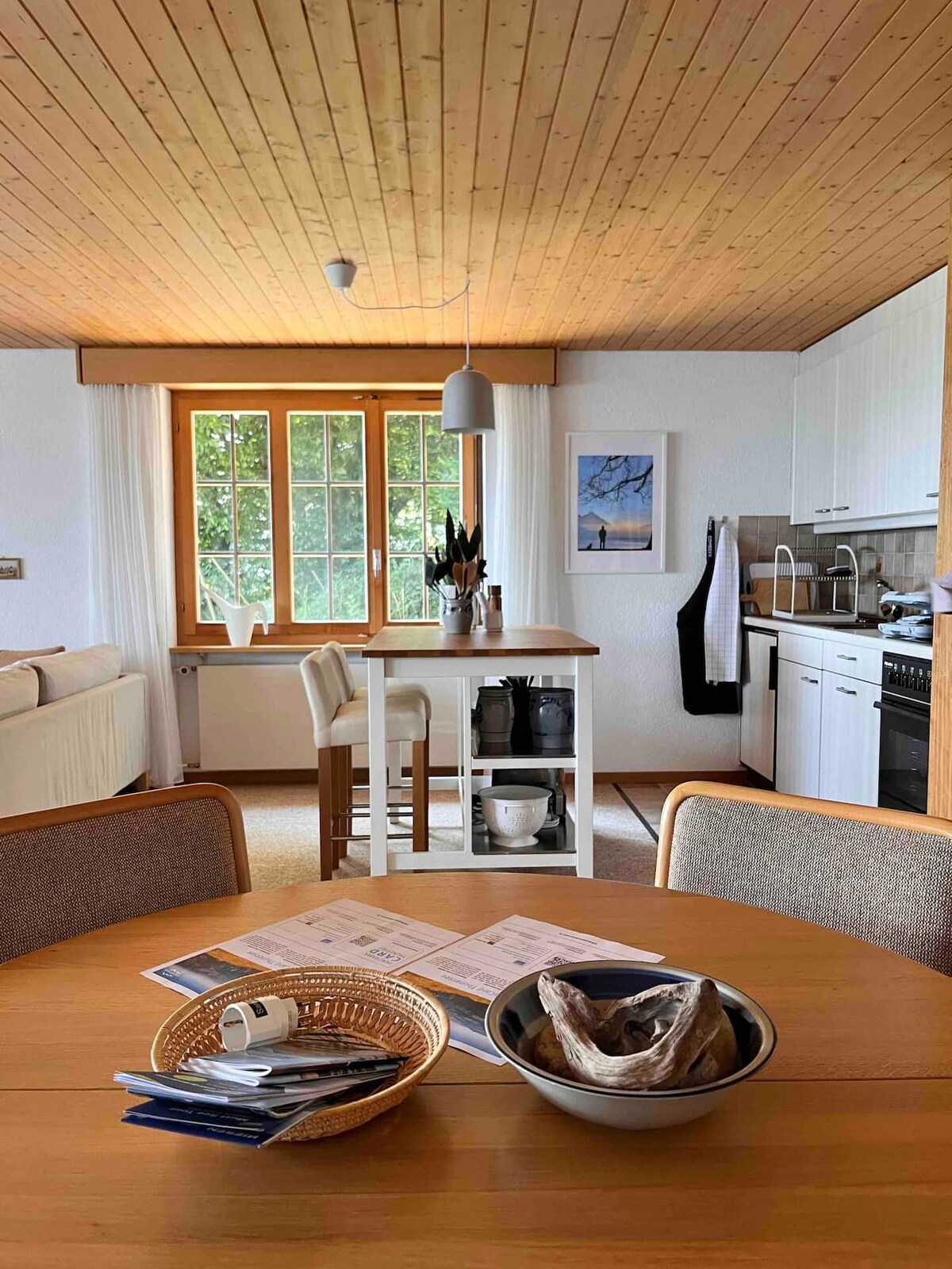 Alójate en un encantador chalet suizo construido en 1927 por mi bisabuelo. Disfruta de unas vistas impresionantes del lago Thun, las montañas y el castillo de Oberhofen. El apartamento tiene 2 dormitorios, una cocina completa, una acogedora sala de estar y un gran balcón. Cerca de Thun, Interlaken y zonas de esquí y senderismo, con tiendas, restaurantes, piscinas y centros de bienestar cerca. ¡Perfecto para relajarse o vivir aventuras durante todo el año! Recibirás la tarjeta Panorama, que ofrece varios descuentos y transporte público gratuito en la zona