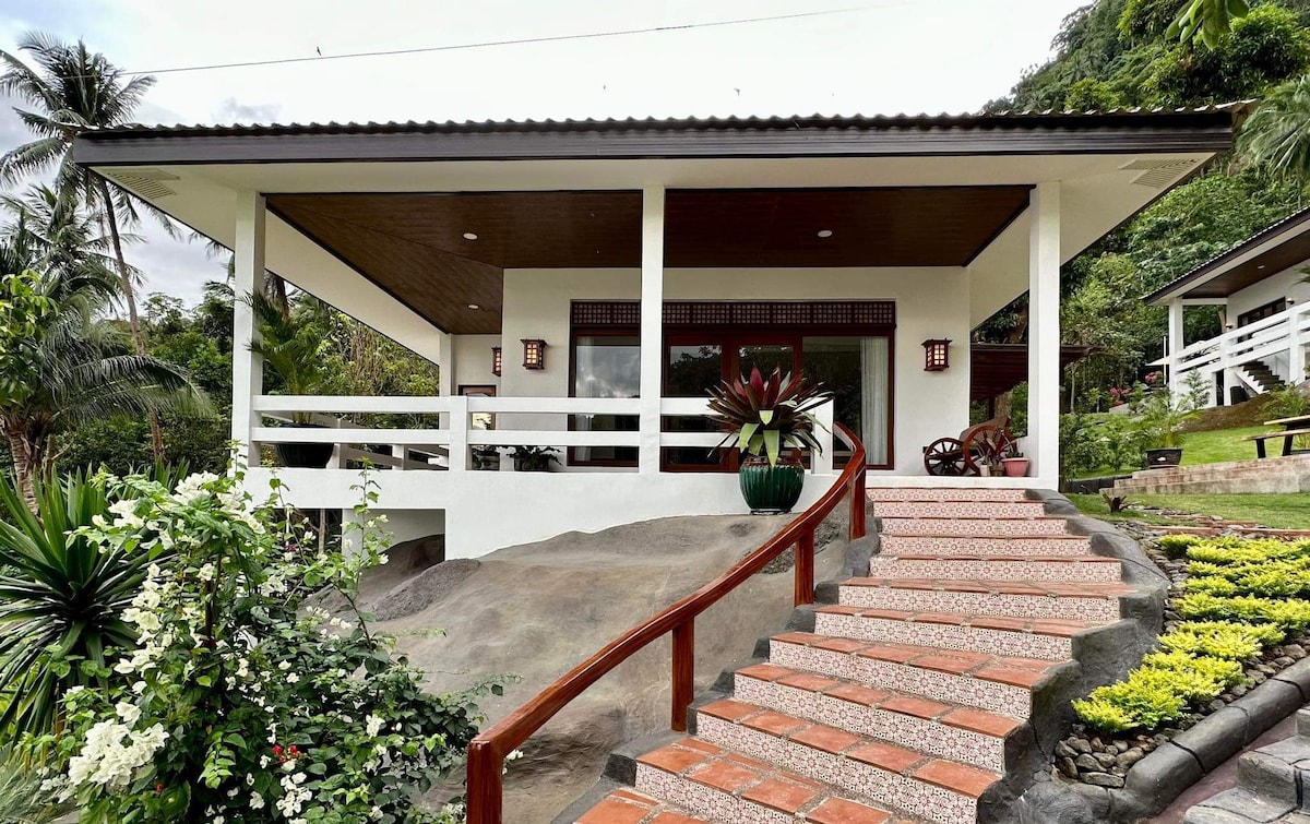 Villa de estilo oriental en medio de un jardín tropical con piscina privada y vistas impresionantes al mar de Sibuyan, ¡una de las bahías más bellas del mundo! *** INCLUIDO *** - Cocinero personal disponible todos los días que puede preparar comidas bajo petición (ingredientes no incluidos). - Desde el muelle hasta Le Manoir, podemos ayudarte a organizar el traslado. - ¡Experiencia única! Para cualquier otra solicitud, nuestro encargado Rexon está aquí las 24 horas, 7 días a la semana, para ayudarte.