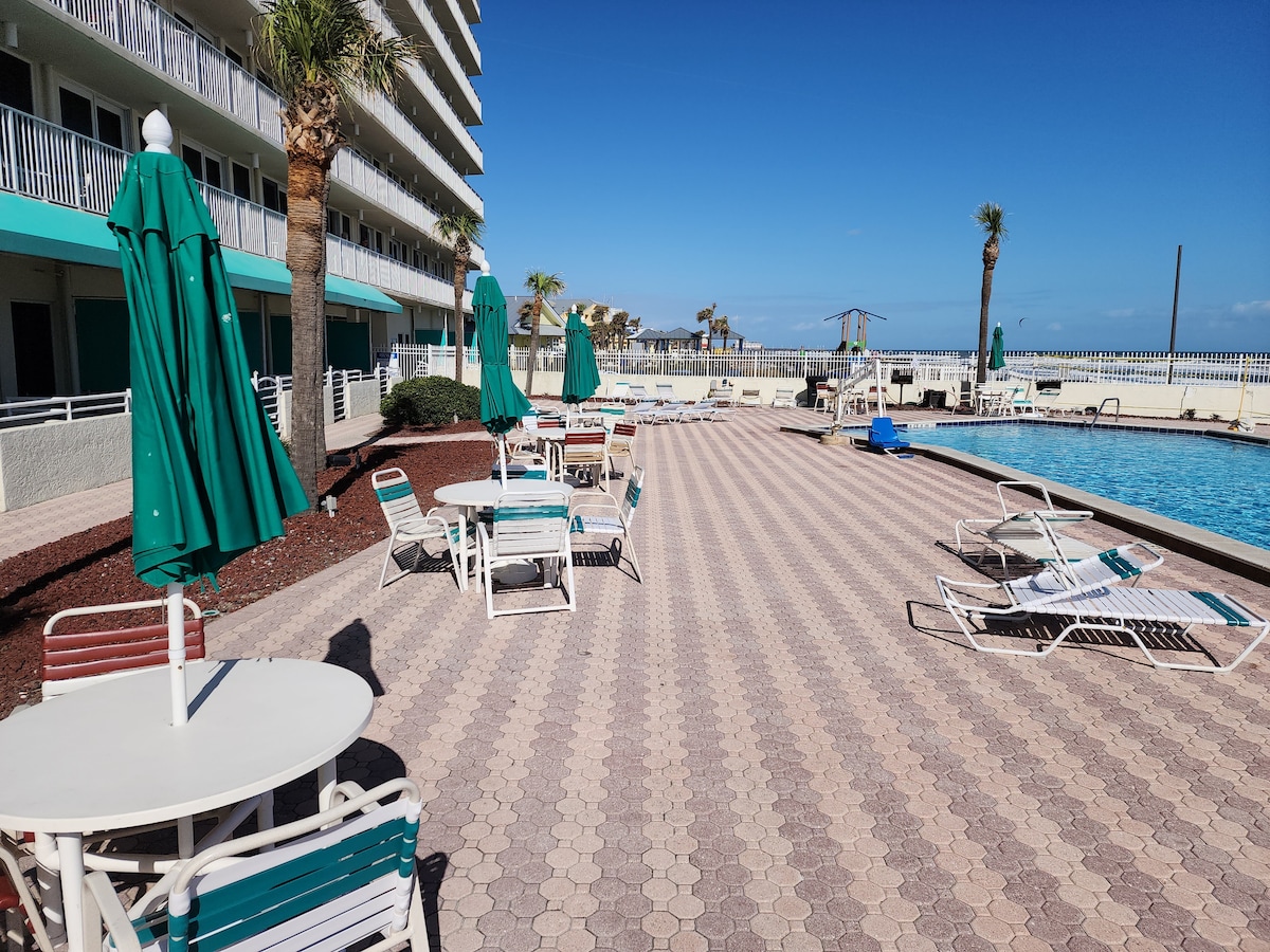 Relájate en nuestro apartamento céntrico, a solo unos pasos de la playa, el paseo marítimo, el muelle y la animada calle principal de Daytona. Ubicada en el tercer piso, la unidad ofrece vistas al mar desde un balcón privado. Disfruta de acceso exclusivo a la playa, una plaza de aparcamiento reservada y servicios que incluyen un bar Tiki con deliciosa comida, bebidas refrescantes y música en vivo, todo a solo unos pasos de la arena. ¿Tienes alguna pregunta? No dudes en ponerte en contacto con nosotros. ¡Estaremos encantados de ayudarte!