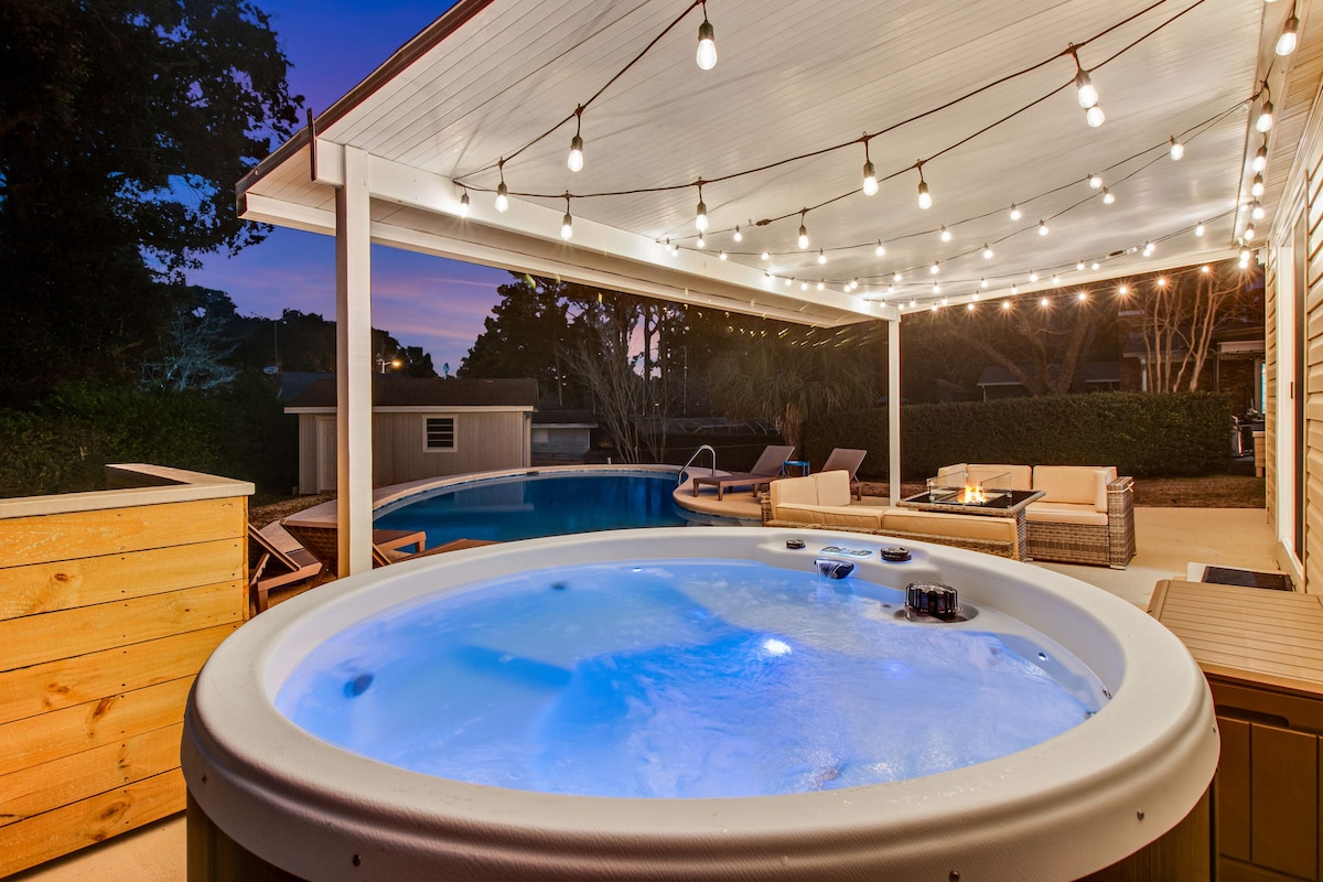 Saltwater Pool Firepit & BBQ Pet-Friendly Near 30A