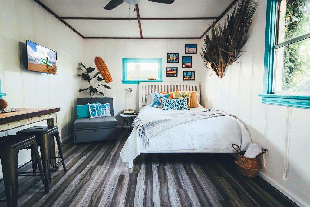**Recientemente actualizado** Esta casa de huéspedes de vacaciones de ensueño de 526 pies cuadrados cuenta con 1 dormitorio, 1 baño y un patio privado vallado. La casa de huéspedes está totalmente equipada con todo lo que necesitarás, incluyendo calefacción/aire acondicionado, ventiladores de techo, televisión por streaming con YouTube TV en el salón y el dormitorio, una lavadora y secadora, una cocina completa totalmente equipada, una sala de estar y todo lo que necesitas para un día de aventura en la playa. Hay un baño completo inspirado en el spa con una hermosa ducha a ras de suelo.