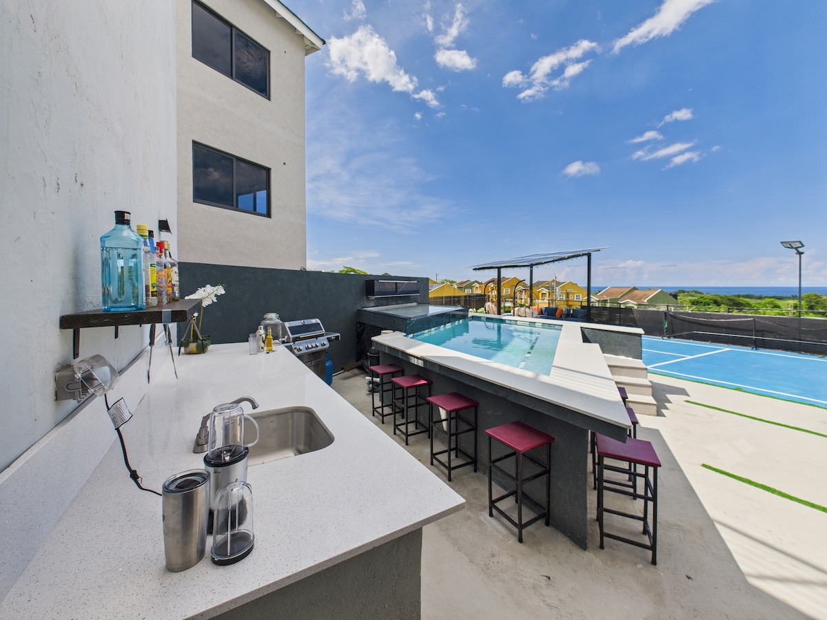 Bienvenidos a Villa Palaav: un oasis moderno en una comunidad privada cerrada Perfecto para: • Viajes de cumpleaños • Grupos de despedida de soltero/a - Reuniones familiares • Viajes con amigos • Retiros 🎉 Paquetes de celebración desde US$ 350 Esta villa de 6 dormitorios con vista al mar cuenta con tres suites de 2 dormitorios tipo apartamento con cama king, cada una con cocina privada, 1 o 2 baños y áreas de estar de concepto abierto, energía solar, captación de agua de lluvia y refrigeración inteligente. Las comodidades incluyen: • Piscina privada. • Cancha de pickleball • Sala de billar. • Minigolf