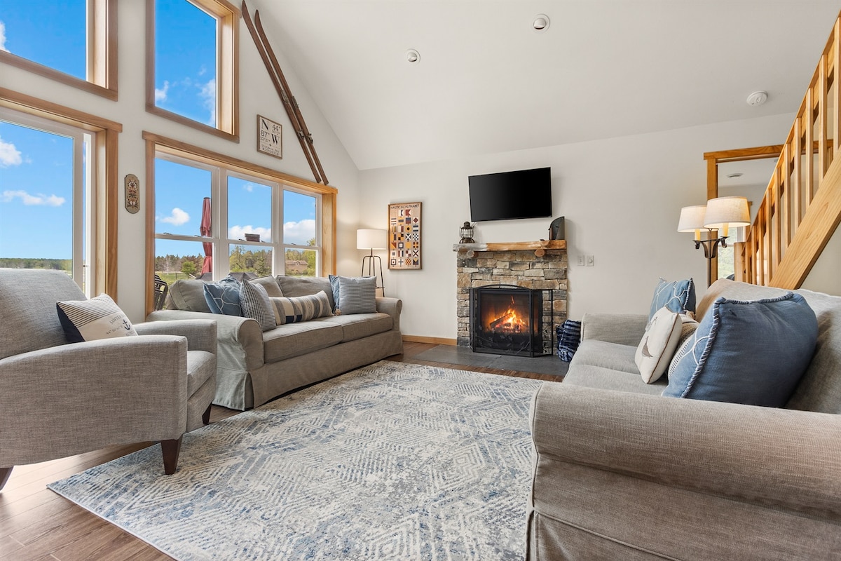 Esta casa de campo contemporánea de nueva construcción está a pocos pasos del lago Míchigan y del parque estatal Point Beach. ¡Con una hermosa sala de estar de concepto abierto con chimenea de leña! Esta moderna cabaña de estilo minimalista está decorada con buen gusto con obras de artistas locales y muchas comodidades. ***Se aplica una tarifa por mascotas***