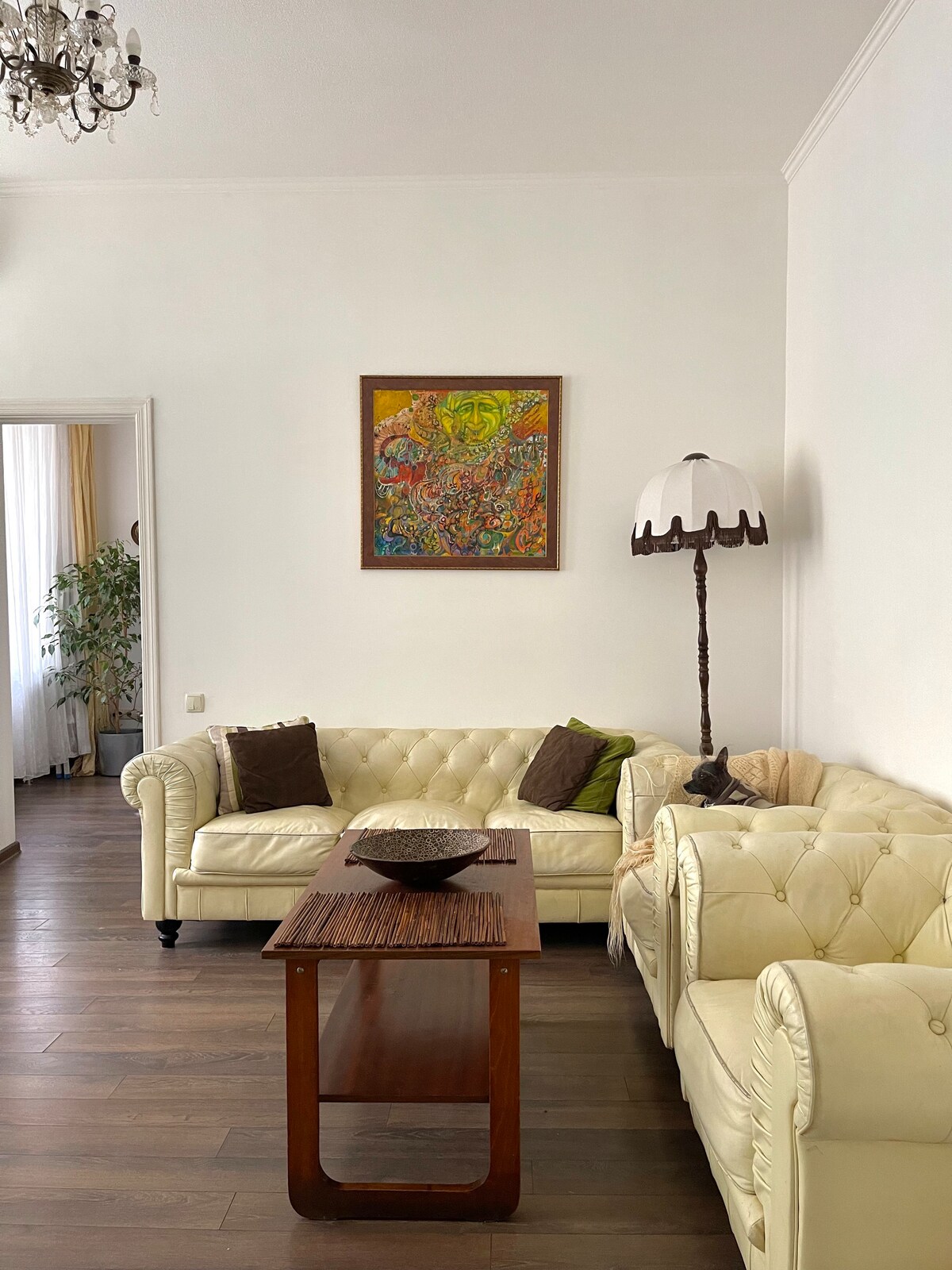Un elegante apartamento en el centro, diseñado en estilo escandinavo con muebles vintage y arte moderno. Se encuentra a 15 minutos a pie de la playa y a 10 minutos del parque central, rodeado de muchos restaurantes y bares. Un edificio prerrevolucionario con un acogedor patio de Odessa. El apartamento cuenta con un dormitorio separado con cama de matrimonio y un cómodo sofá cama en el salón. El apartamento está totalmente equipado con todo lo necesario.