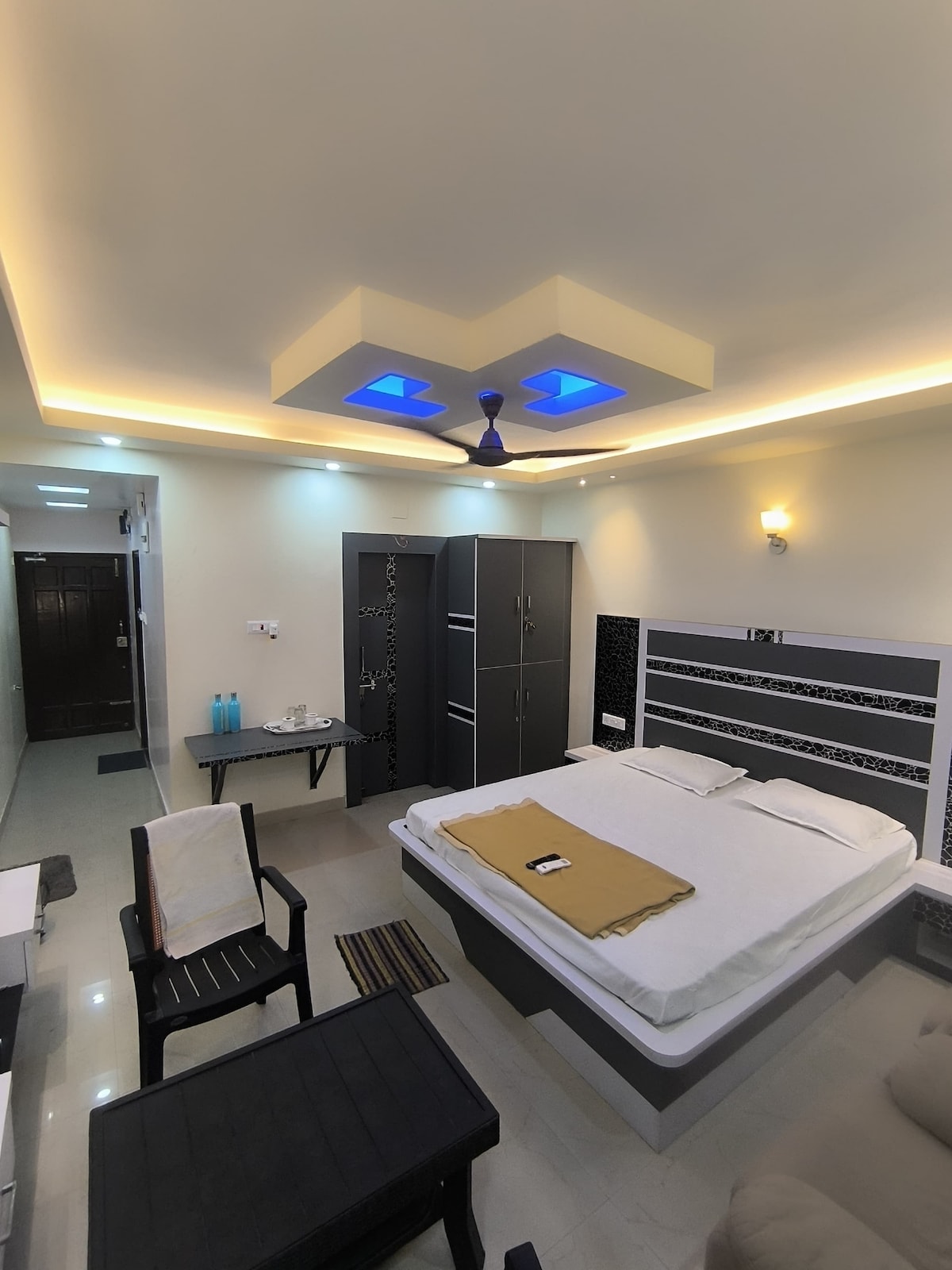It's a very spacious room with balcony. Well Interior with kitchen accessories. Cloud kitchen also available, food can be delivered at your door steep option available. Guest house is nearer to beach & temple. Ample space for parking available. Another 17nos of rooms also available, can be given. Cab facility also available.