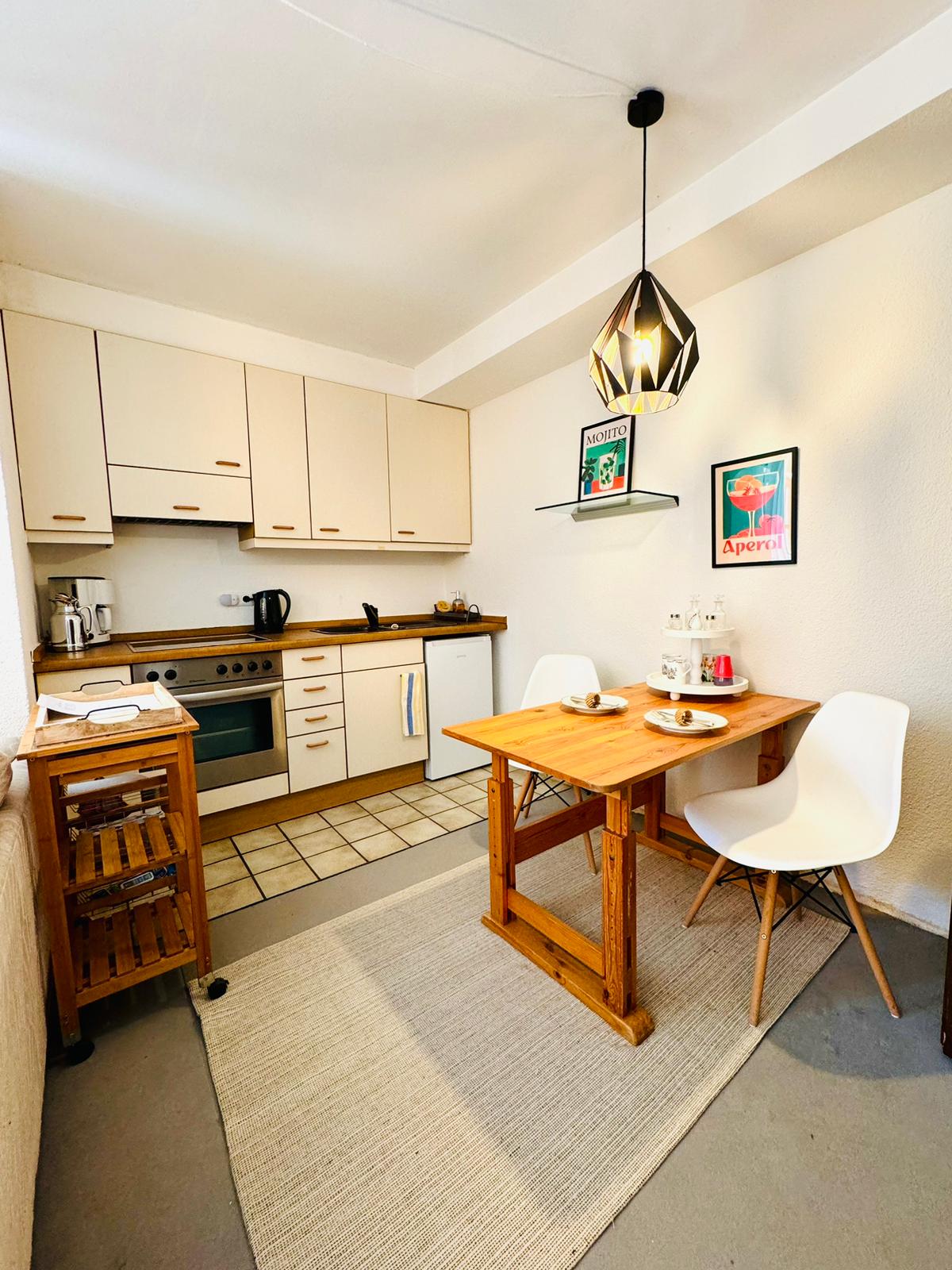 El apartamento está en el centro de la ciudad de Bad Homburg y se encuentra en el segundo piso de una casa de entramado de madera. Impresiona por su ubicación muy céntrica, su agradable clima interior, su encanto histórico y sus modernas comodidades. En tren S-Bahn, estarás en el centro de Frankfurt en 20 minutos. La calle comercial comienza casi directamente detrás de la casa. Y el castillo de Homburg está a 2 minutos a pie. El paseo hasta el legendario Casino Royale, el parque termal y el Taunustherme tampoco dura más de 20 minutos.