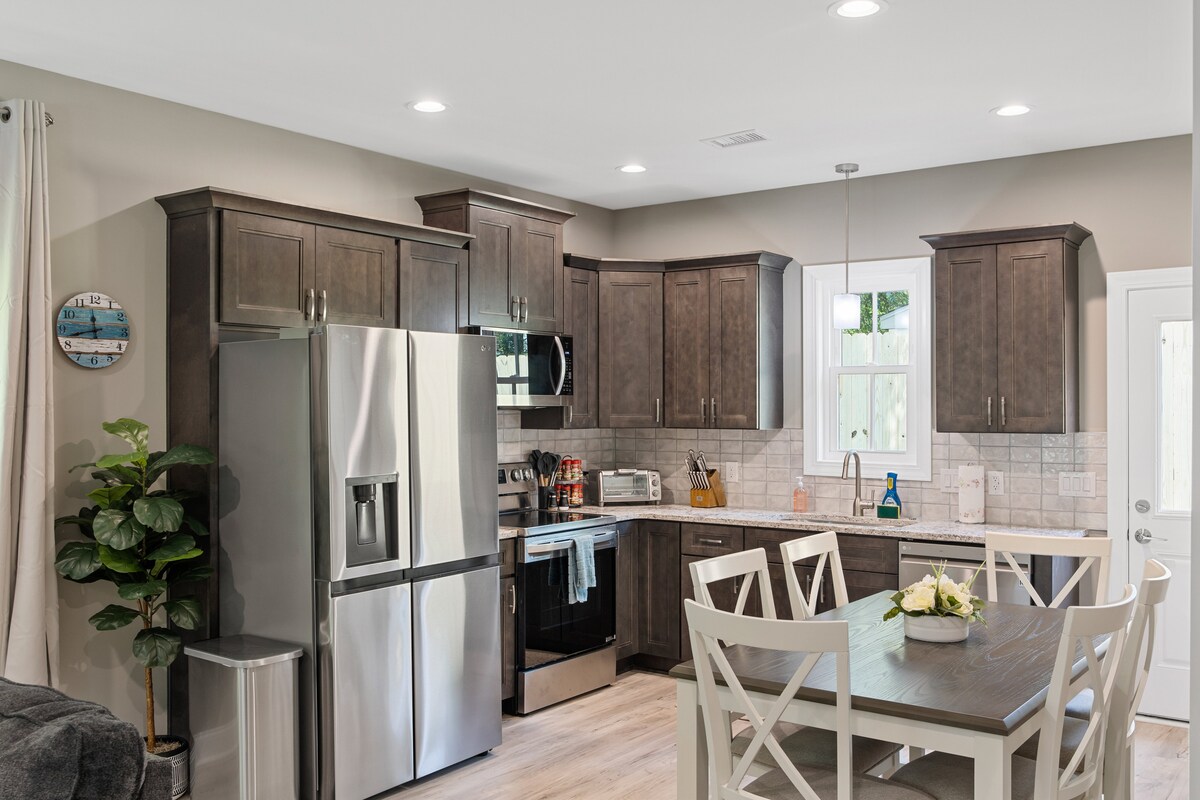 The Modern Peach ~10 mins to Beach~Fenced Yard