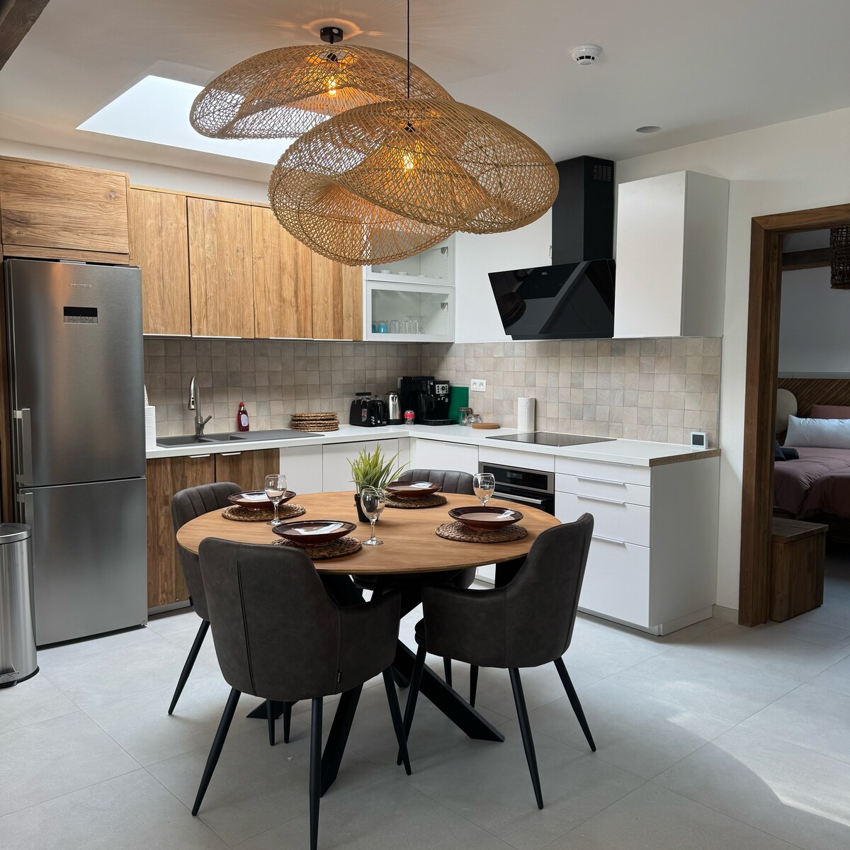 ¿Buscas un lugar verdaderamente único para sorprender a tu pareja? ¿Para celebrar una ocasión especial? ¿O simplemente para retirarte a un lugar tranquilo después de un día estresante? Entonces ven a El Clandestino - Luna, situado en medio de una reserva natural a 5 minutos del centro de la maravillosa ciudad de Dinant. ¡Te sentarás en lo alto de una colina con una vista asombrosa de la ciudad y al mismo tiempo estarás en medio del bosque! La casa está totalmente equipada con su propio pozo privado, Netflix, chimenea.