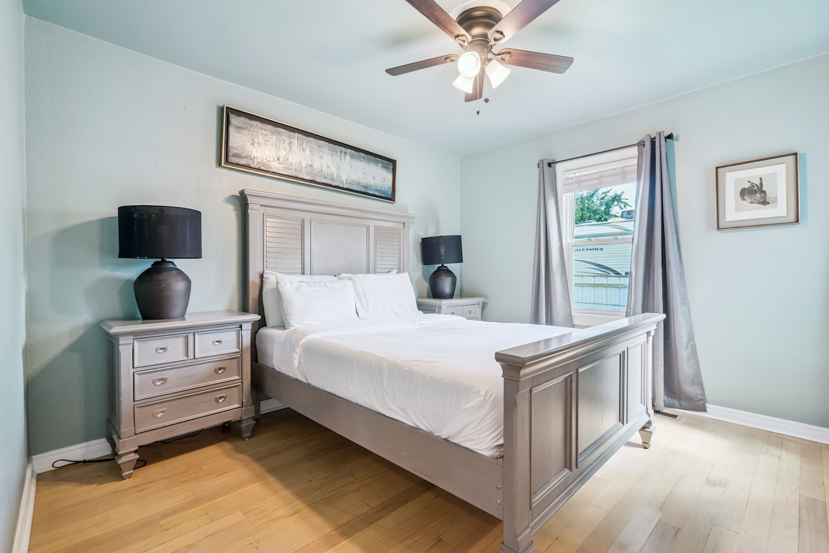 Una maravillosa suite principal con temática de playa ha atracado en OKC, situada en el centro, cerca del Centro Médico OU, el Capitolio, el centro de la ciudad y mucho más. LGBTQ-friendly, este es el hogar de 2 profesionales de bienes raíces. Totalmente remodelado. Diseño elegante. Bañera de lujo para que empapes tu cuerpo mientras escuchas música relajante. Ven a alojarte en nuestra suite para disfrutar de una de las mejores casas remodeladas de Oklahoma City y enjuagarte en nuestra moderna ducha con temática de playa o descansar en nuestra lujosa cama de espuma.