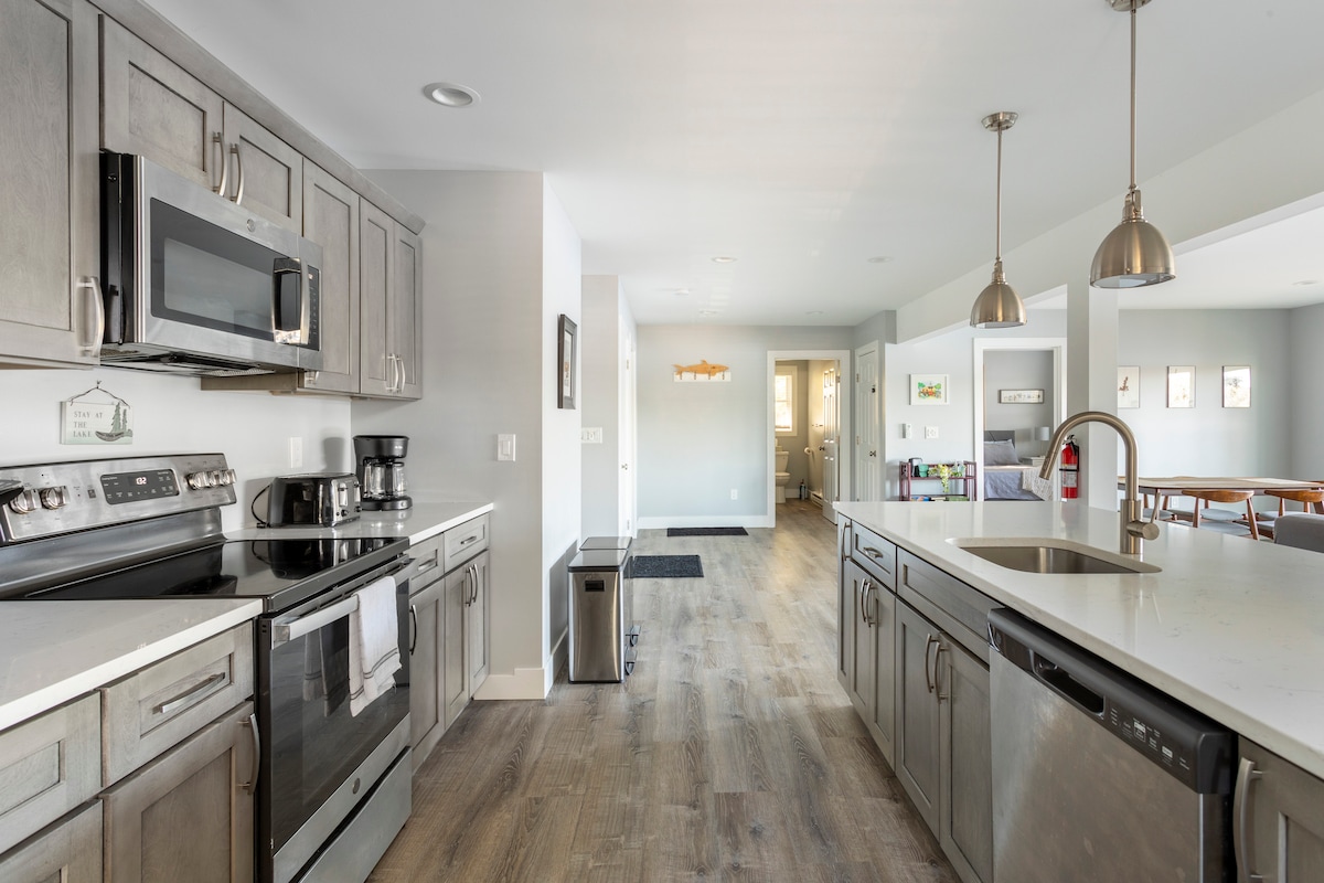 Departamento completamente remodelado frente al lago con impresionantes vistas del lago Pattagansett. A los huéspedes les encanta el entorno tranquilo, el diseño espacioso y la gran terraza con vistas al agua, perfecta para relajarse o reunirse con familiares y amigos. Impecablemente limpio con cómodas camas tamaño queen de espuma viscoelástica, ropa de cama fresca, televisores inteligentes UHD, wifi rápido y lavandería en la unidad. Tranquilo, privado y pintoresco, pero a pocos minutos de playas, restaurantes, casinos y atracciones de la zona.