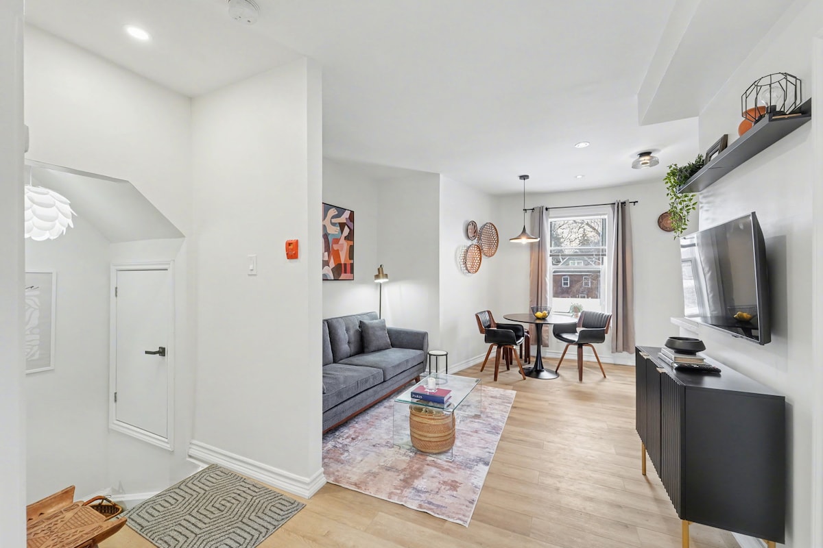 ¡Te damos la bienvenida al último piso de Brunswick! Este renovado apartamento de 2 dormitorios y 1 baño en un triplex victoriano ofrece una cocina totalmente surtida e inspirada en el chef y estacionamiento gratuito para dos autos. Disfruta de colchones de alta gama (uno king, uno queen), una cafetera Keurig, wifi de alta velocidad y una espaciosa terraza para salir. Situado en el vibrante Harbord Village, estás a pocos pasos de cafeterías, restaurantes, bares y atracciones como Kensington Market, Casa Loma, la Rom, UofT, Rogers Centre y Scotiabank Arena.