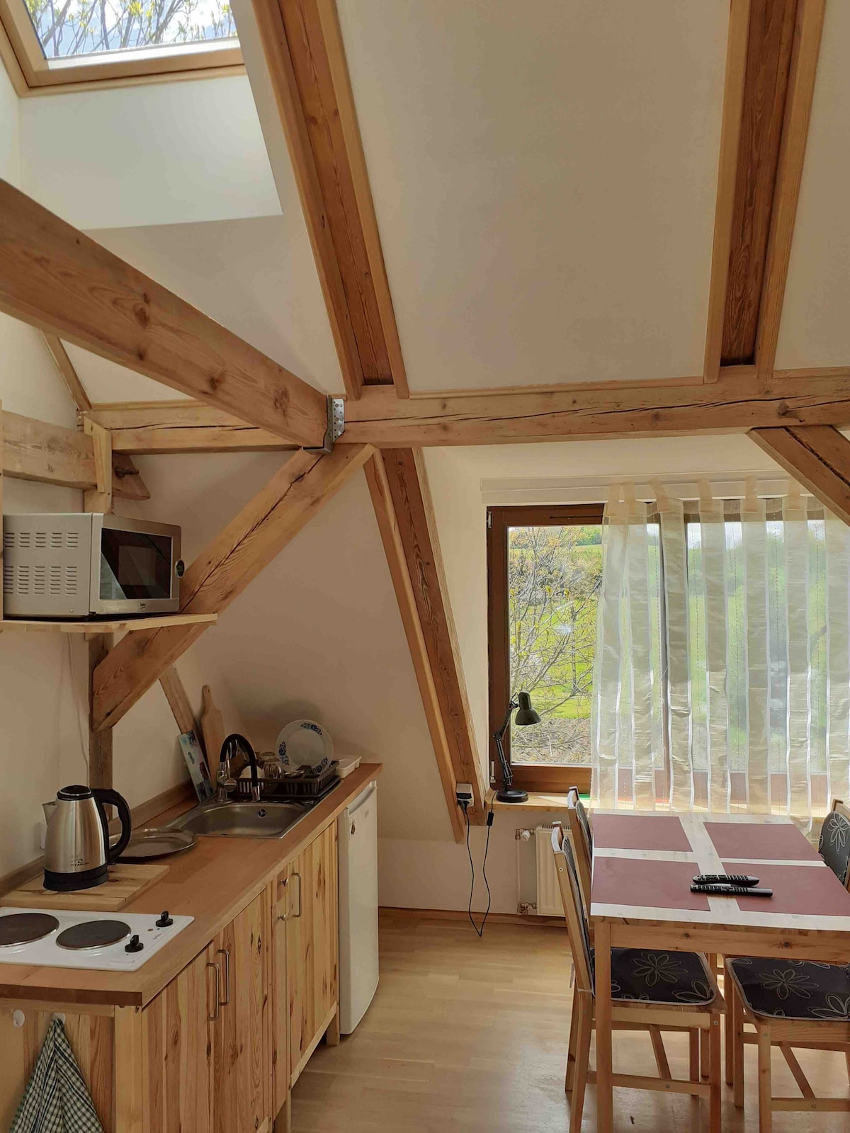 Te invitamos a nuestra casa de arcilla orgánica durante todo el año, lo que nos da una agradable frescura durante el calor. Es un lugar de ensueño para todos aquellos que aman la naturaleza. La sensación relajante de césped bajo los pies descalzos entre los árboles circundantes bellamente expuestos, o beber café por la mañana cuando escuchas el canto de los pájaros, es relajante y relajante.
