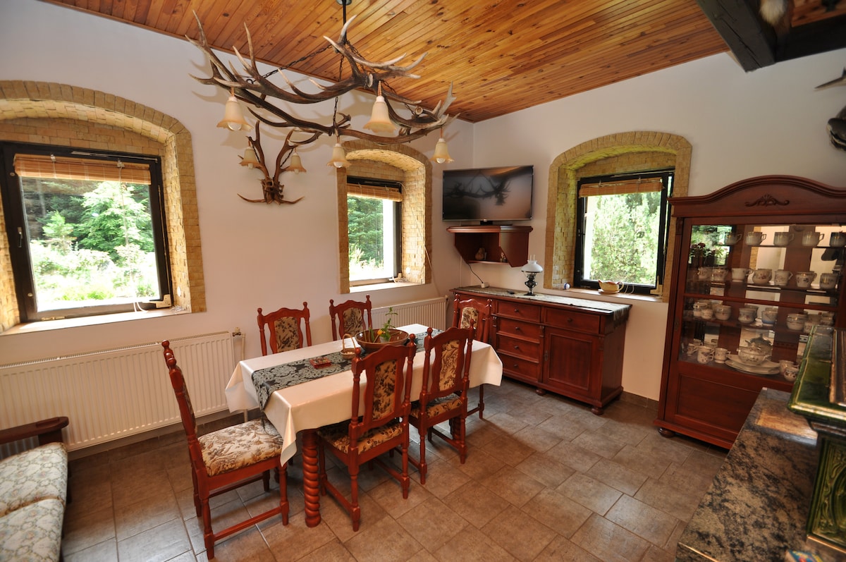 Nuestra casa de campo de 1895 se encuentra en el corazón de Jeseníky en Vrba pod Praděděm con una hermosa vista de las montañas circundantes. La casa está rodeada de la hermosa naturaleza de Jeseníky y a poca distancia de ella ya comienza el bosque. La tranquilidad la proporciona un gran jardín, desde el que hay una hermosa vista, ya sea desde la terraza o desde el estanque en la parte inferior. Hay innumerables opciones para pasear, hacer senderismo o montar en bicicleta. Lo ideal es combinarlos con el descanso a la sombra de un manzano en flor en el jardín.