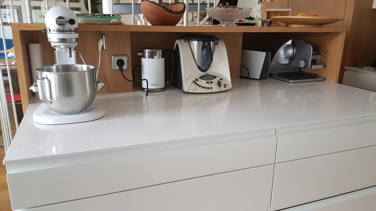 Haz las maletas, entra y siéntete bien. Disfruta de un toque único en la casa de diseño moderno. - Cocina totalmente equipada con electrodomésticos de marca -1 baño con urinario+ duchas de lluvia -1 baño con inodoro+ ducha de efecto lluvia -2 balcones = 1 x sol de la mañana y 1 al atardecer - - 3 dormitorios. - Cocina-comedor El metro a la vuelta de la esquina, el área de arte (Pinakotheken) cerca, el centro de la ciudad se encuentra a 10 minutos. El vecindario ofrece una mezcla ideal de bares de moda, tiendas, galerías y restaurantes.