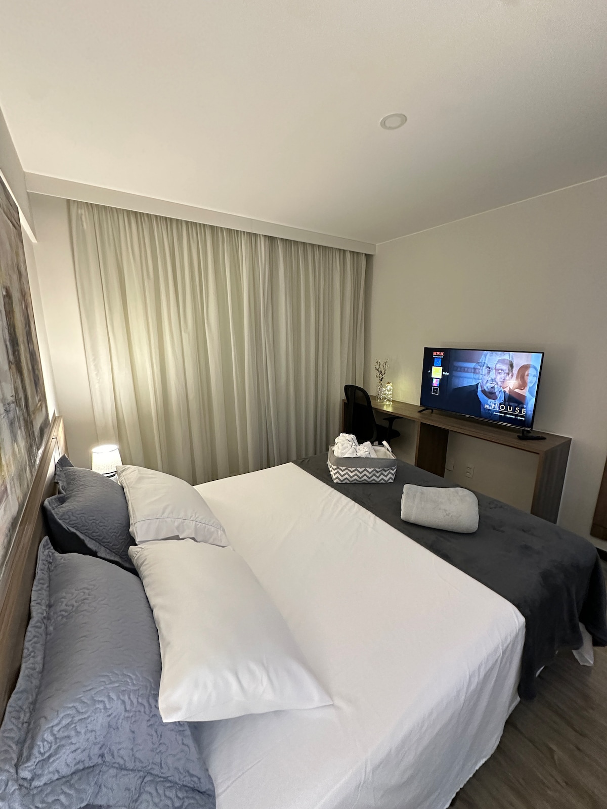 Ambiente super tranquilo e aconchegante na melhor localização da Barra da Tijuca ✨ Acesso à balsa até a Praia da Reserva e toda a área de lazer do Hotel: piscina, sauna e academia completa (Nas quartas a piscina fica fechada para manutenção) AQUI VOCÊ NÃO PAGA TAXA DE LIMPEZA 😉 O quarto possui ar condicionado split, SMARTV 32', banheiro privativo, varanda e um mini frigobar. A recepção é 24h, o condomínio é super seguro e o estacionamento é incluso na reserva👍🏻 SOMOS PETFRIENDLY 🐶