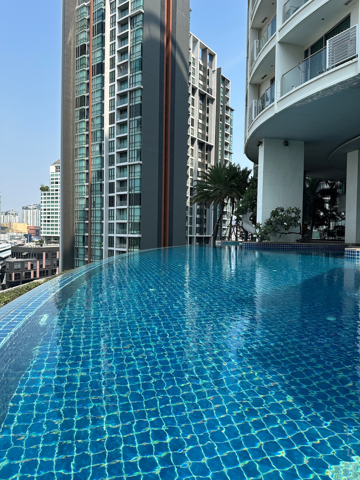 Cómodo departamento de 1 habitación con bañera, vista al cielo y piscina, a 1 minuto de la estación de BTS PhraKhanong