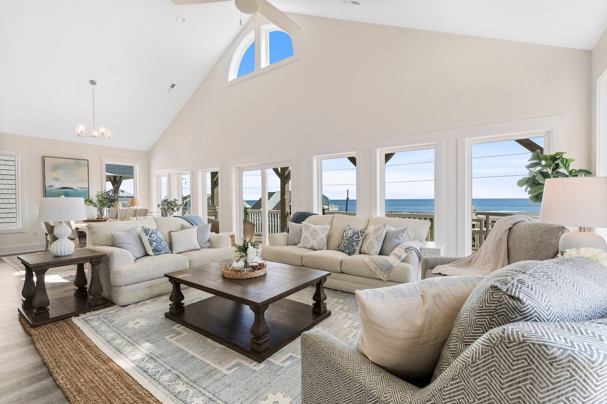 ¡Ven a disfrutar del lujo frente al mar a un precio familiar! Nuestro apartamento en la planta superior ofrece unas vistas impresionantes del resplandeciente océano Atlántico, la bahía de Chadwick y las marismas de los alrededores. El espacioso diseño de 1 cama/2 baños con literas en el pasillo y un sofá cama en la sala de estar puede alojar cómodamente hasta cuatro adultos y dos niños. Todos los huéspedes tienen acceso al St. Regis Resort, que es exclusivo de Topsail Island. Tenga en cuenta que el edificio adyacente a nosotros está en construcción otoño/invierno '25