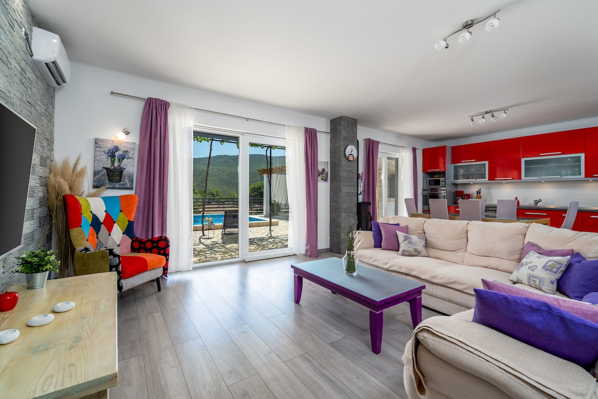 Esta hermosa villa con piscina se encuentra en Primorski Dolac, a solo 5 km de la entrada a la autopista Prgomet y, sin embargo, en un lugar aislado y tranquilo donde serás recibido exclusivamente por la paz y la tranquilidad necesarias para unas excelentes vacaciones. Su excelente ubicación también te permite acceder rápidamente al mar. En la vegetación del jardín, a primera vista notarás una villa lujosamente decorada con muchas instalaciones al aire libre. Detrás de la puerta principal encontrarás un interior magistralmente decorado.