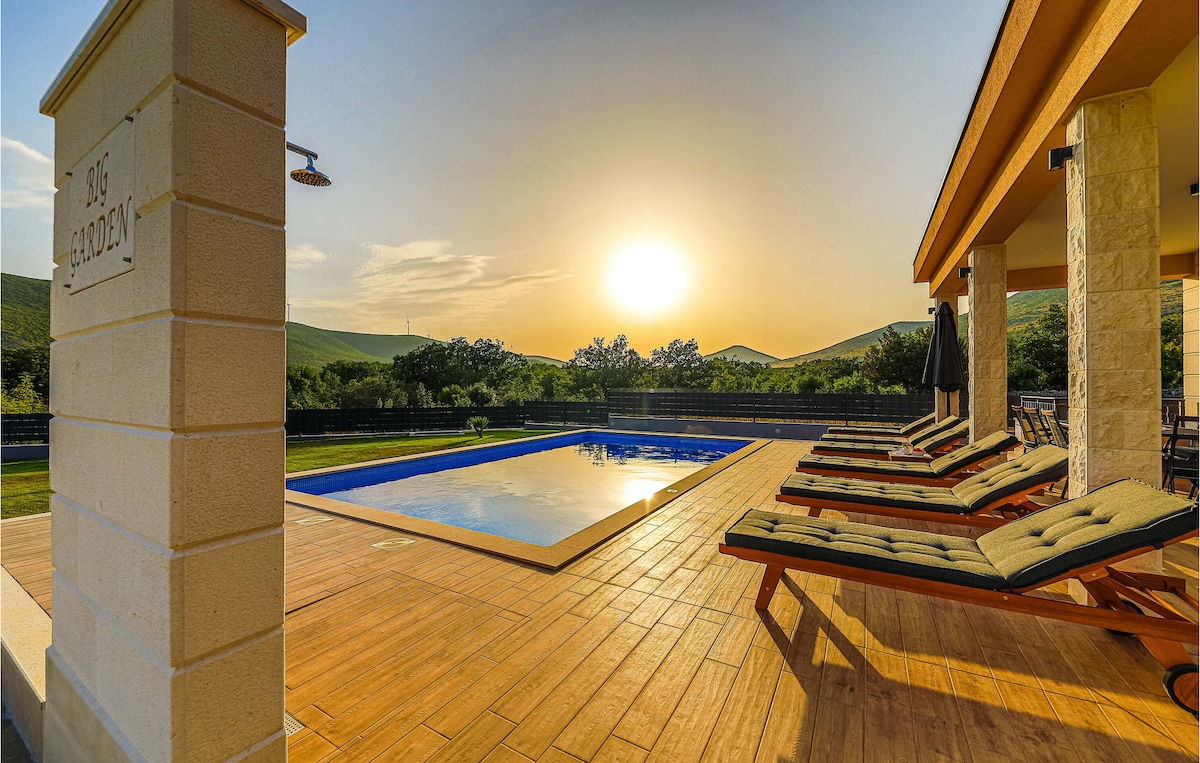 Pasa unas vacaciones en un entorno tranquilo ideal para familiares y amigos que quieren un idilio rural en esta hermosa casa con piscina. Las habitaciones están ubicadas en el primer piso, ya que la planta baja no funciona. Relájate en un espacioso patio con un hermoso girasol frente a una piscina ubicada sobre el jardín. En el jardín, puedes degustar verduras cultivadas ecológicamente. Ciudad histórica de Trogir, Sibenik , Split , Parque Nacional Krka.