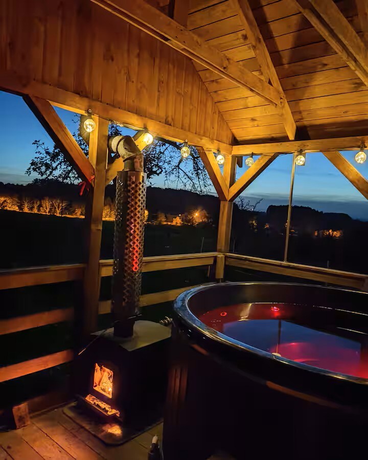 Relájate en este espacio tranquilo y elegante. Hemos creado apartamentos cómodos y acogedores con grandes ventanales en un claro vallado privado con vistas a la puesta de sol más hermosa, interiores en los que querrás quedarte para siempre. Te daremos una pista: hace calor, y la temperatura del ambiente se eleva con la chimenea y la promesa de una noche en un barril caliente bajo las estrellas y una sauna.