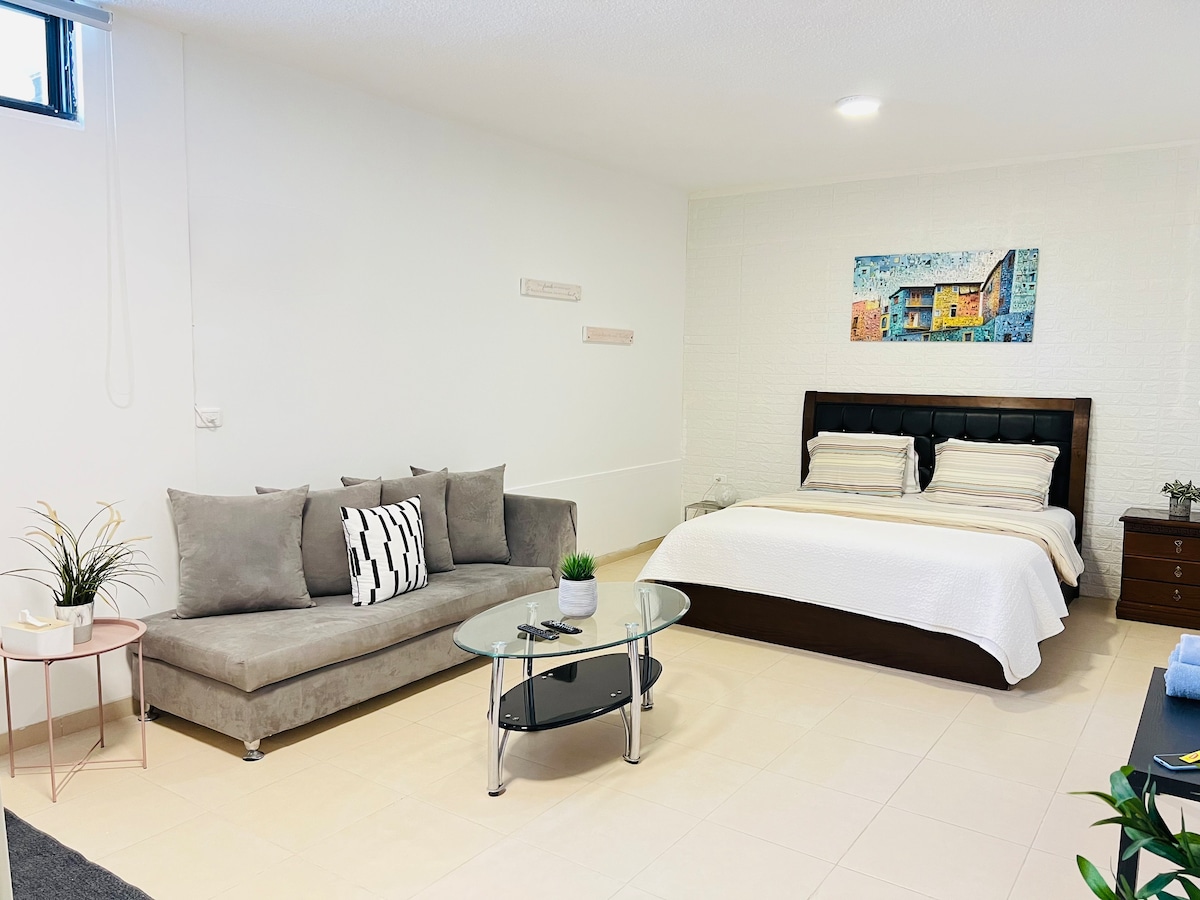 "El lugar más dulce de Ono" es un departamento romántico a estrenar, ubicado en el tranquilo suburbio de Tel Aviv, entre el aeropuerto Ben Gurion y Tel Aviv, a 5 minutos de las autopistas. Cerca del transporte público. Cerca de la Universidad Sheba y Bar Ilan. El apartamento tiene entrada privada y está totalmente amueblado y equipado. Incluye WIFI , aire acondicionado, televisión , mucha privacidad y mucho más para que disfrutes de una estancia encantadora. Cerca de un centro comercial, parque y muchas cafeterías. Estacionamiento gratuito en las instalaciones. Incluye escaleras.