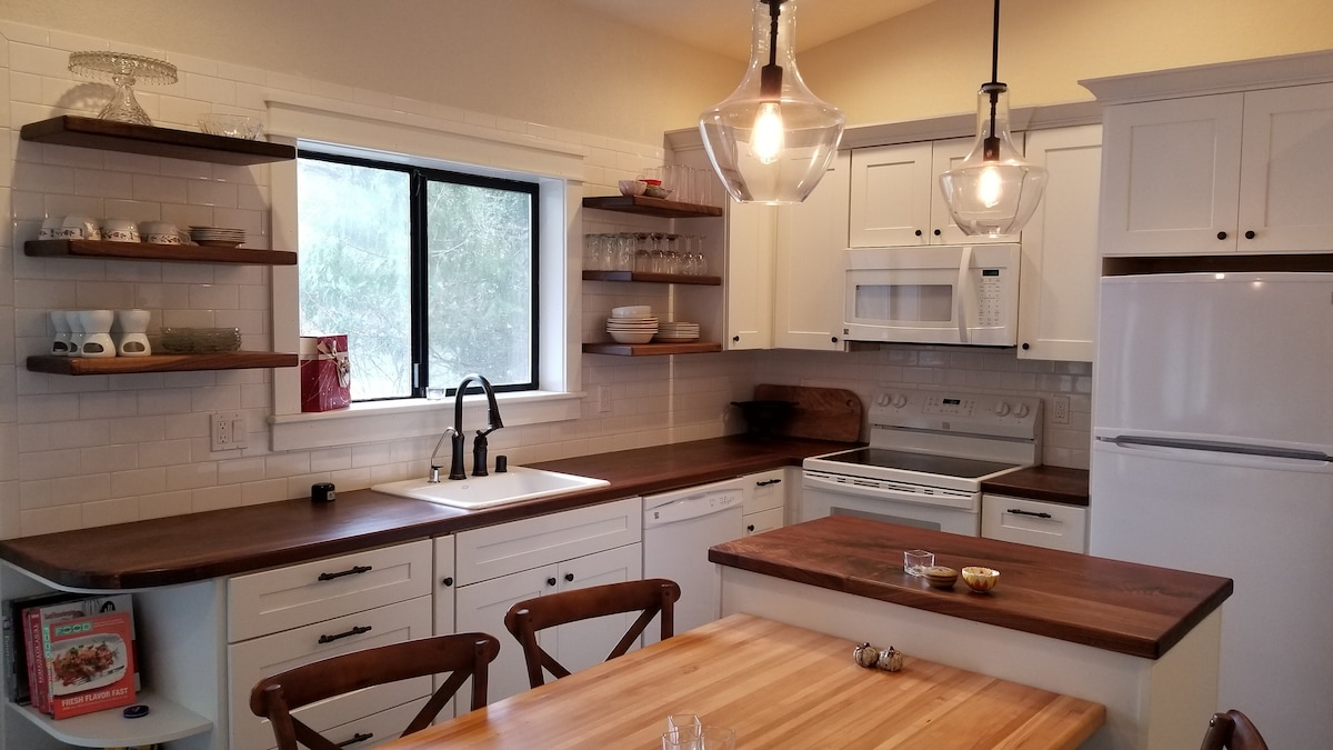 Esta preciosa casa de campo está situada en el corazón de Coupeville. Bellamente ajardinada y en el paseo marítimo. A poca distancia a pie de restaurantes, tiendas, festivales, escuelas de arte, edificios del condado y el campus del hospital WhidbeyHealth. Esta casa de campo privada cuenta con cocina completa, dormitorio principal con cama tamaño queen, loft con cama tamaño queen, terraza orientada al sur, estacionamiento en la calle y wifi gratuito. ¡Con un hermoso paisaje, duérmete con los sonidos de nuestro arroyo justo fuera de tu ventana!