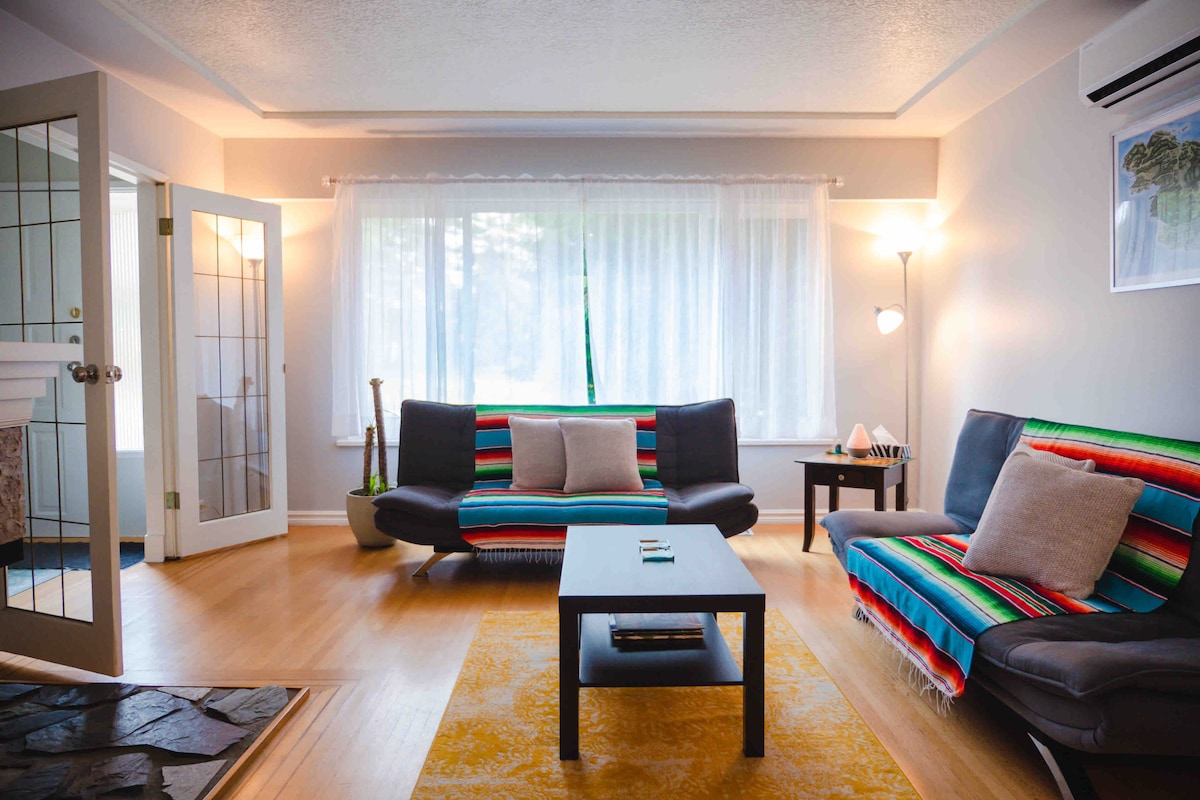 Respira tranquilamente entre los árboles en nuestro pequeño y encantador espacio para huéspedes, ubicado en la planta baja de nuestra casa. Estamos ubicados a 5 minutos de algunos hermosos senderos para practicar senderismo y a 10-15 minutos de Fairhaven y Bellingham para comer, ir de compras, etc. Un acogedor rincón para ducharte, escribir, reflexionar, beber un poco de té o café y descansar bien antes de tu próxima aventura. Cama tamaño California King, cocina completa, ducha y bañera, con sales de Epsom si quieres remojarte después de un largo día.