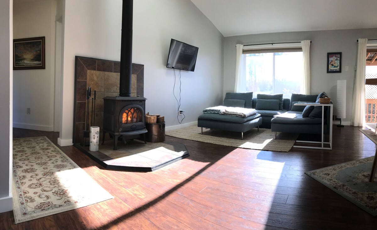 Disfruta de nuestra hermosa y acogedora cabaña que se calienta exclusivamente con una estufa de leña, al borde de un mágico bosque de cedros antiguos en nuestra granja y viñedo de 11 acres. Relájate en la cubierta construida en los árboles y duerme tranquilamente en la cama del altillo, mientras te sumerges en la naturaleza que te rodea. La bonita casa exterior está justo al final del camino y la bañera de hidromasaje de cedro/ducha al aire libre está junto al jardín.