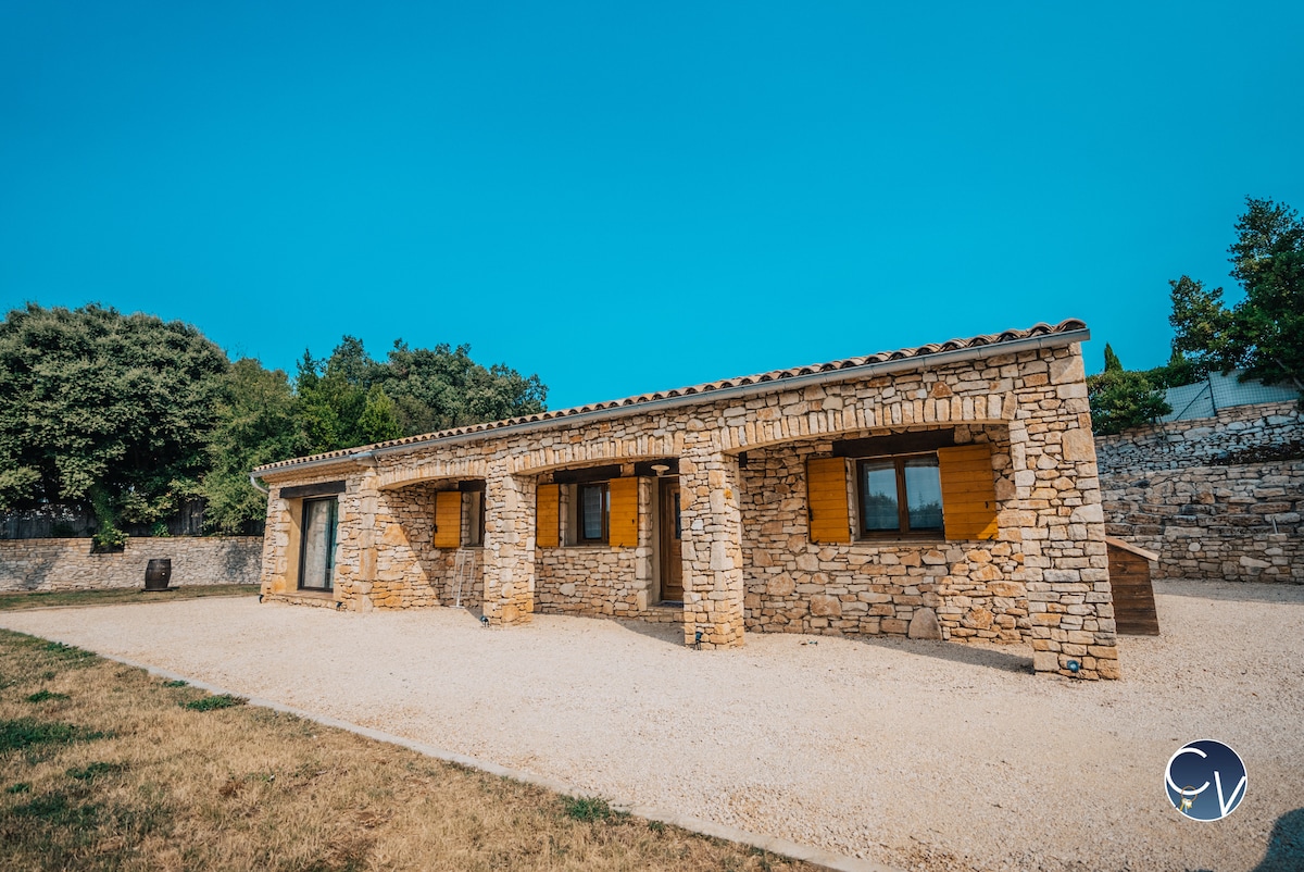 ¡Bonita casa rural independiente de piedra con SPA y piscina privada climatizada sin vecinos y con impresionantes vistas a los viñedos del valle del Cèze! Pequeño pedazo de paraíso para 2 personas. Situado cerca de 4 sitios clasificados como «los pueblos más bellos de Francia». Goudargues -3 km.