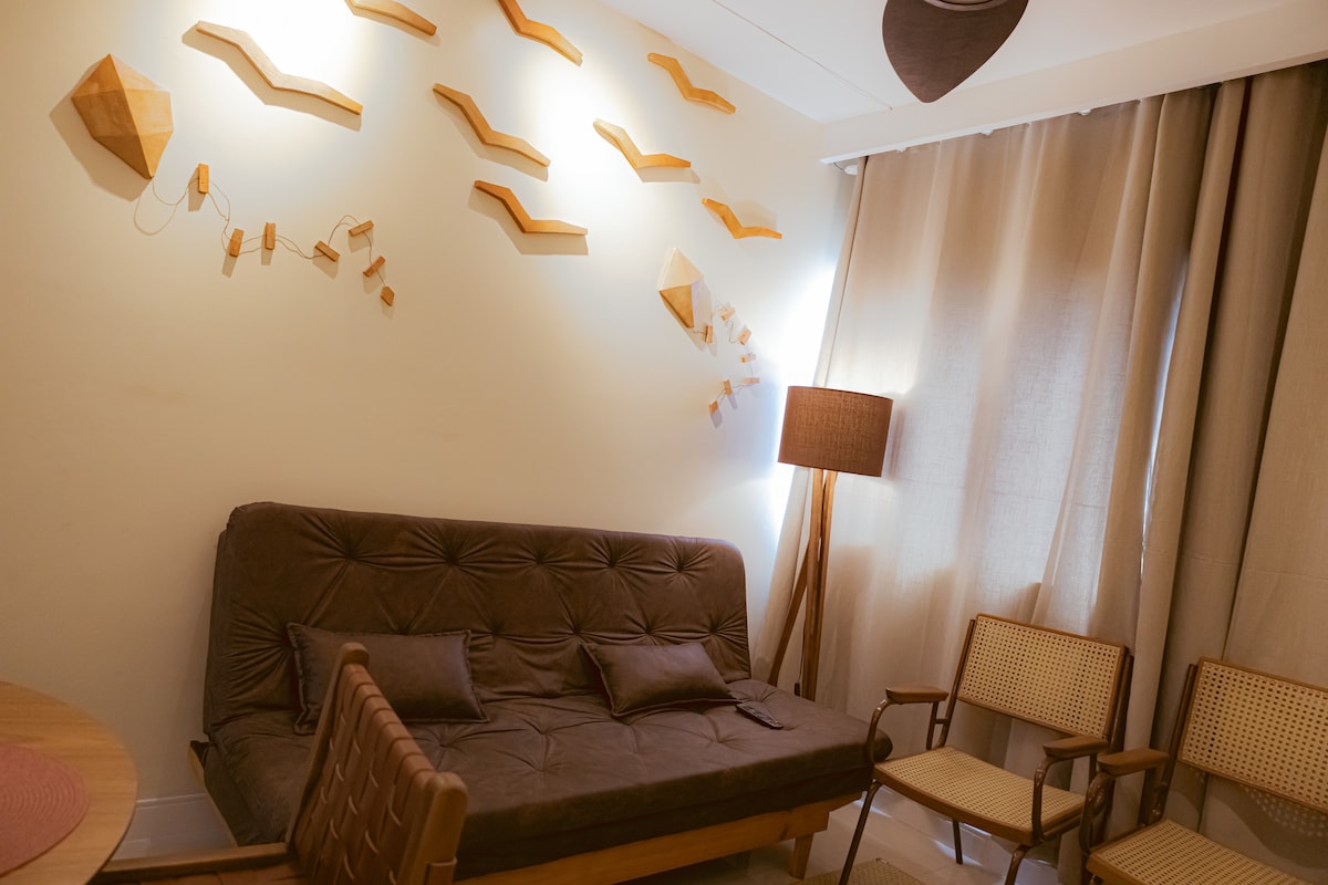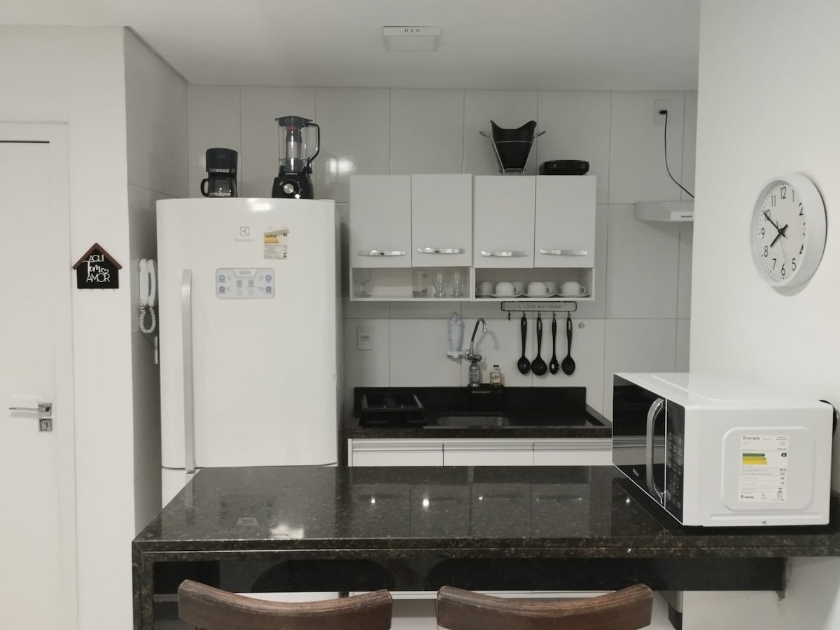 Bienvenidos a su moderno estudio en el corazón de Petrolina: un espacio acogedor que combina comodidad y practicidad. Ideal para dos personas, cuenta con una cama matrimonial, aire acondicionado, TV, wifi de alta velocidad y una zona de trabajo. La cocina está totalmente equipada con vitrocerámica, nevera, microondas, freidora de aire y cafetera. Aceptamos mascotas y ofrecemos una estancia segura, funcional y con una excelente ubicación.