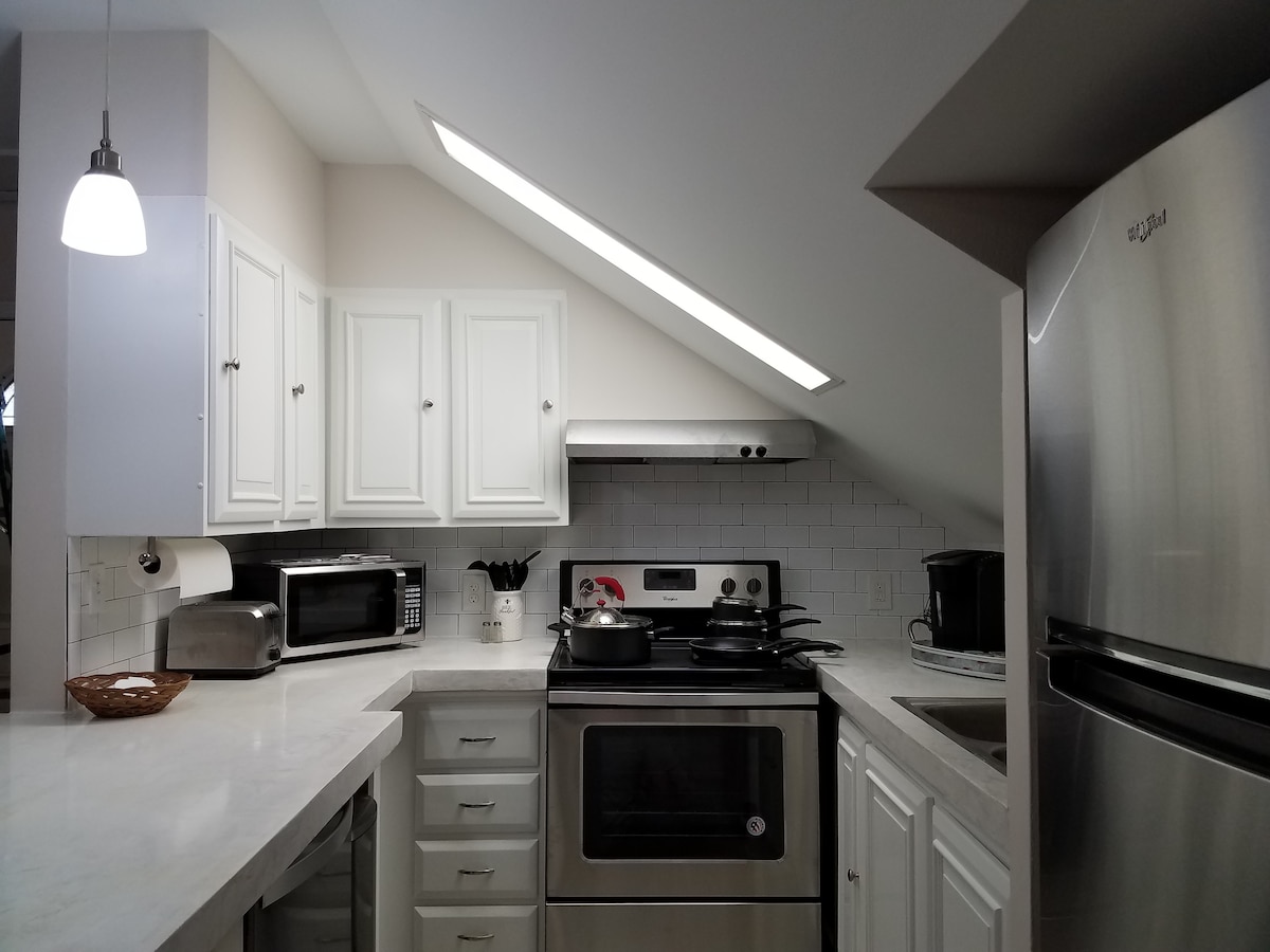The Hidden Gem es un apartamento privado en la parte trasera de nuestra casa de 30 años. Los huéspedes disfrutarán de una acogedora sala de estar, cocina completa, dormitorio con colchón tamaño queen nuevo y baño. El apartamento tiene capacidad para dos personas. La sala de estar está cómodamente amueblada, con un sofá (sofá cama tamaño queen), sillón, mesa de centro, lámparas y ventana. Hay un patio al aire libre con mesa y sillas, así como aparcamiento fuera de la calle con una puerta con cerradura. Nuestros vecinos respetan la señal de prohibido estacionar.