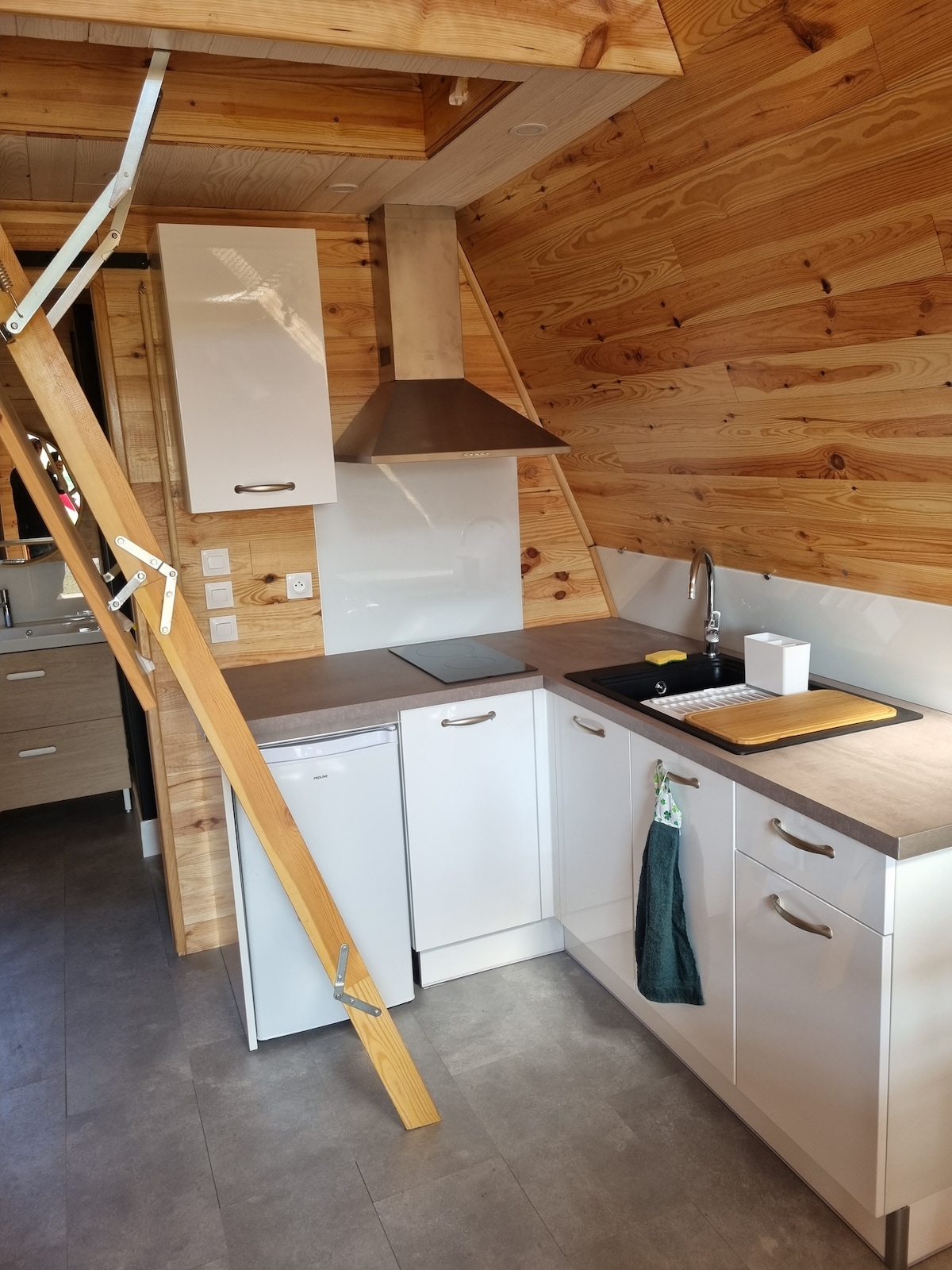 Acogedora cabaña totalmente equipada de 19 m² en el campo con unas vistas espectaculares Ideal para descansar, hacer senderismo y teletrabajar (wifi) La cabaña cuenta con un amplio estacionamiento y una terraza sin vecinos. Allí encontrará 2 calefactores eléctricos, una sala de estar, cocina equipada, un comedor y un baño con inodoro. Entrepiso con cama para 2 personas, en la planta baja un sofá cama con ropa de cama cómoda Ubicado en los Alpes Mancelles, Fresnay-sur-Sarthe / St-Léonard-des-Bois (senderismo, trail running) / St-Céneri-le-Gérei (pueblo muy bonito)