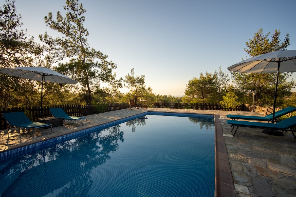 A beautiful and unique mountain-side cottage house with a large swimming pool and outdoor area with breath-taking views of the mountains and sea. Located on the hills of the village of Vyzakia just before Troodos mountain and Kakopetria you can come here to relax and enjoy the more mountainous side of Cyprus. An ideal location being only 25 minutes from the nearest beach and only 15 minutes from the mountain. Secluded on a private hillside you can be sure to enjoy a peaceful holiday.