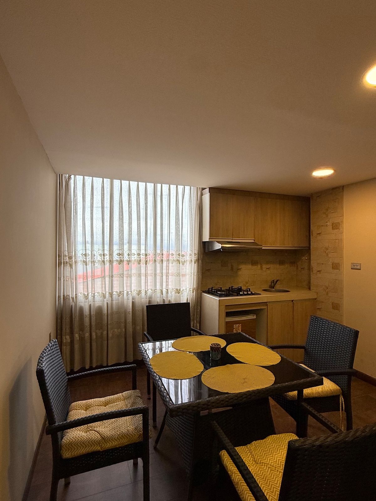 • Disfruta de la comodidad de estar a solo unos minutos del centro • Dormitorio de Ensueño: Descansa en una amplia cama. •Sala-comedor luminoso con muebles de mimbre modernos, ideal para planear tu día o disfrutar un café • Baño: Ducha moderna con acabados tipo madera y diseño contemporáneo • Cocina Práctica: Espacio funcional y equipado, perfecto para preparar tus comidas con todo a la mano. ¡Reserva ahora y vive la ciudad desde un espacio acogedor y céntrico