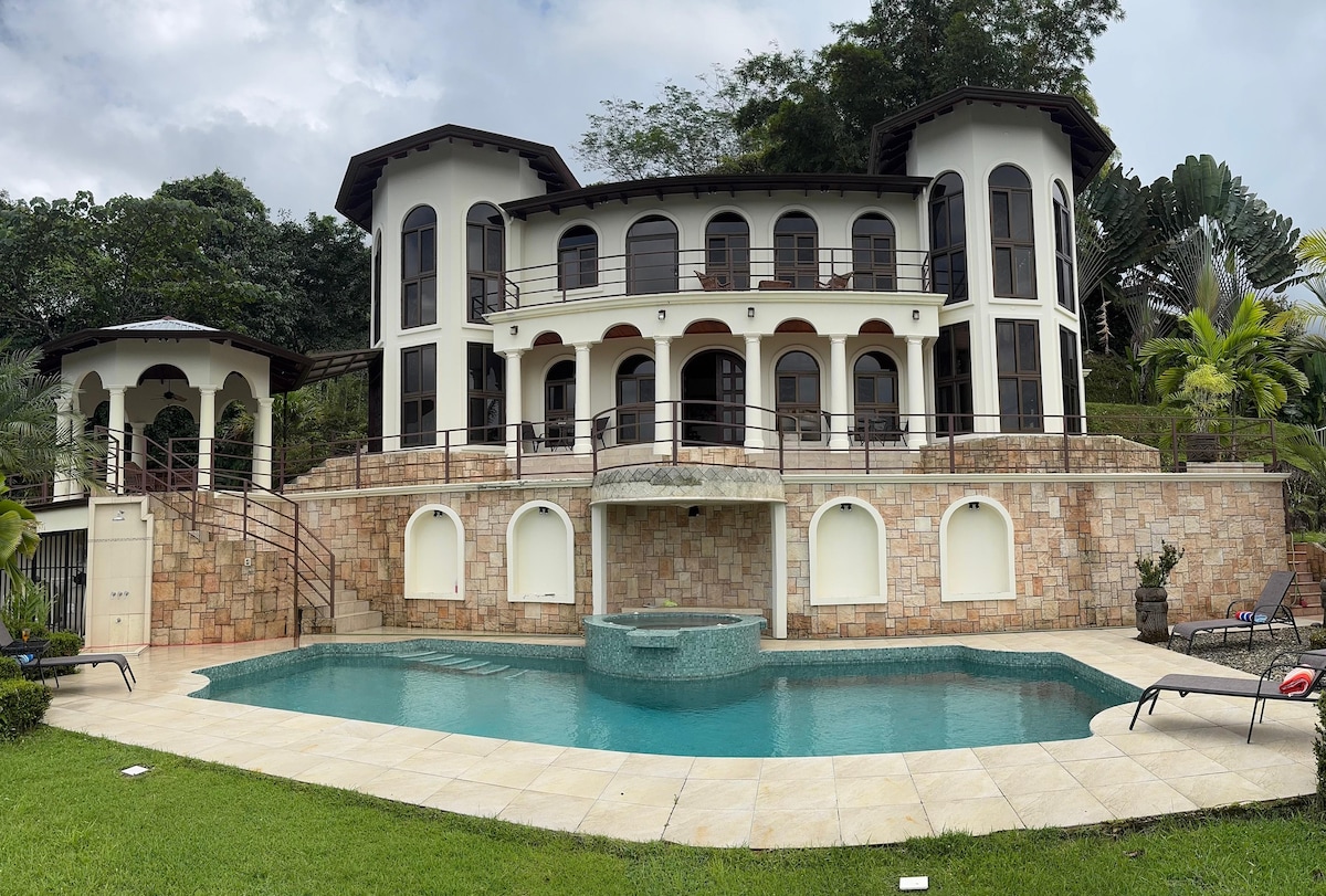 Very spacious and stylish pool villa with 6 bedrooms (all with private bath) for up to 12 guests, surrounded by rainforest. Wake up to monkeys and toucans, explore private trails to small waterfalls – a true paradise for birdwatchers. Relax on the large pool deck, enjoy the private pool, covered dining & BBQ. Covered parking included. Easy to reach without 4x4. Nauyaca Waterfalls next door, Dominical Beach 10 min away, plus countless excursions. Perfect for families, groups and retreats!