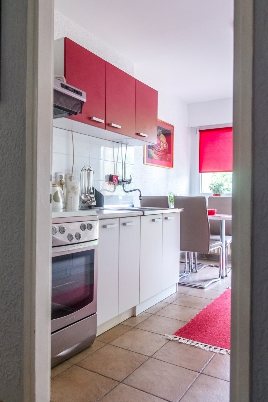 Relájate en este lugar acogedor y elegante. El apartamento estudio consta de un área de cocina con un comedor y un espacio con una cama. El pequeño baño está separado por una puerta. El estudio está recién reformado y totalmente equipado, tiene aire acondicionado y tiene una conexión wifi inolvidable. Si es necesario estacionar, debes reservar el mismo al reservar un apartamento (ubicado en el garaje subterráneo de la estación de autobuses), y se proporciona una tarjeta para uso gratuito.
