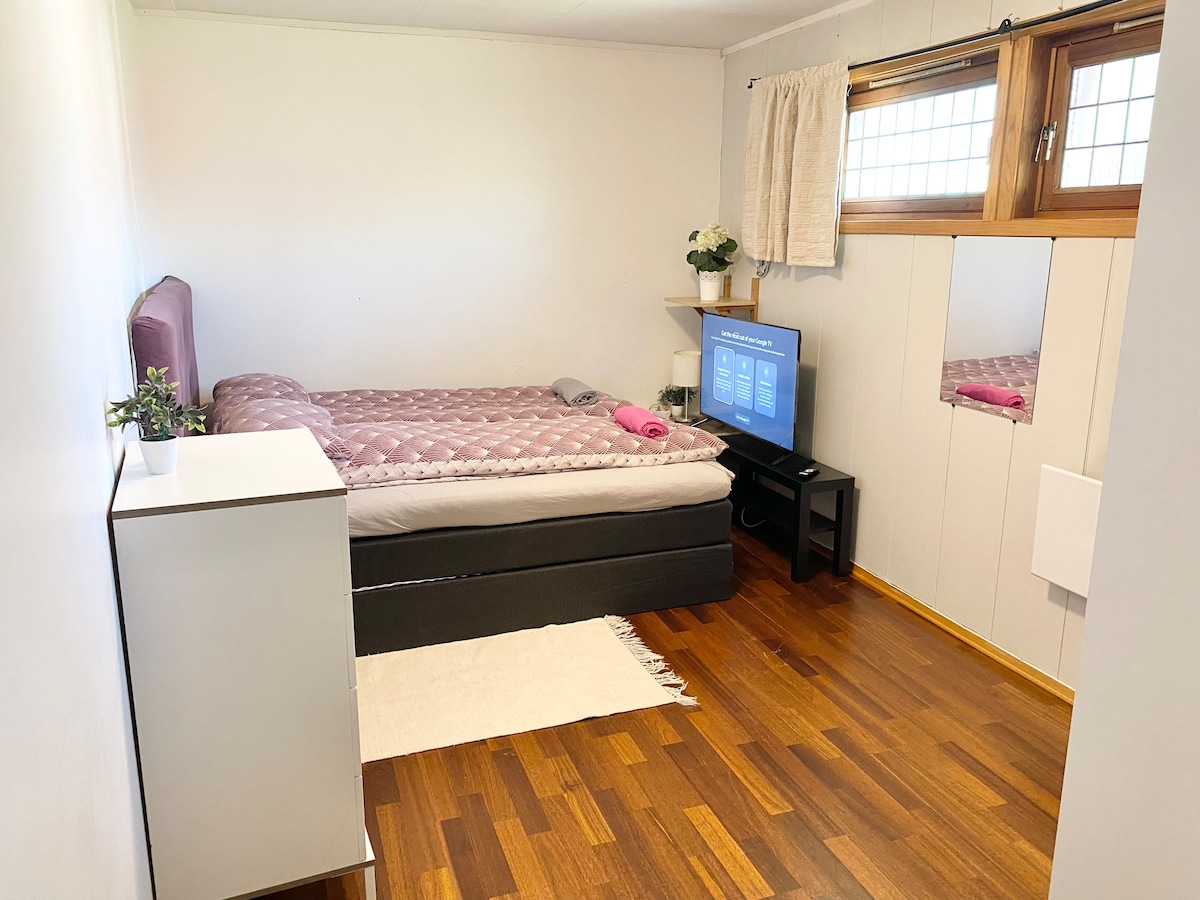 Esta es una minicasa recién renovada y espaciosa con una cama doble, cocina con comedor, armario, baño y casa para dormir. Hay estacionamiento privado gratuito en las instalaciones. Ubicación céntrica con comunicación comercial y pública cercana. A poca distancia del fiordo con playa, comedores y zonas de senderismo. Buen lugar también para familias con niños grandes/ compañía de hasta cuatro personas, de las cuales dos son lo suficientemente móviles como para subir las escaleras hasta la casa para dormir. Patio privado y exuberante jardín de acceso en los meses de verano.