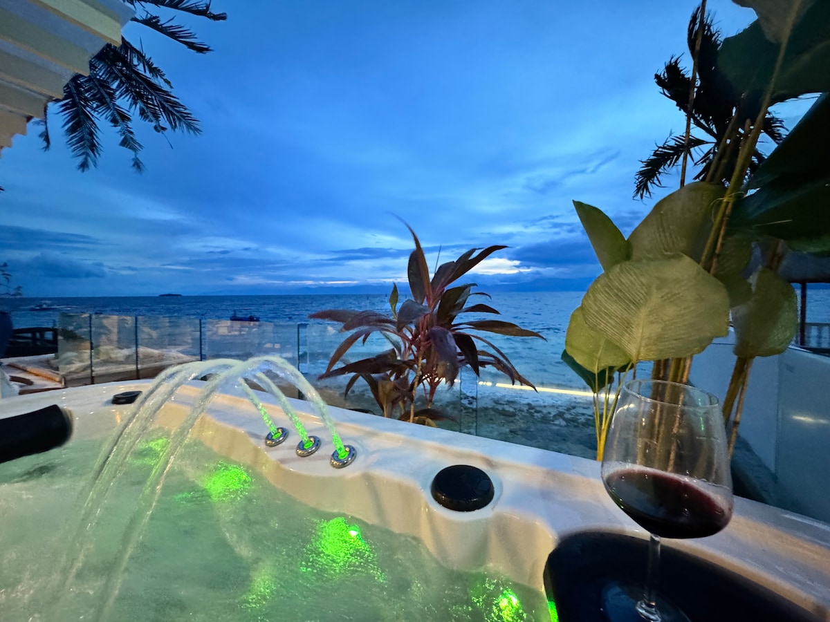 Disfruta de una experiencia con estilo en el corazón de Panagsama, Moalboal. A pocos pasos de la vida nocturna, restaurantes y cafés, esta villa céntrica tiene capacidad para 6 adultos y 4 niños menores de 6 años. Disfruta de acceso directo a la playa, una bañera de hidromasaje con vistas al agua, comedor al aire libre, parrilla al aire libre y un amplio espacio de descanso con vistas al mar. La villa tiene aire acondicionado y una cocina totalmente funcional. El dormitorio principal tiene baño y aseo. El dormitorio del segundo nivel tiene capacidad para 4 personas y cuenta con su propio balcón.