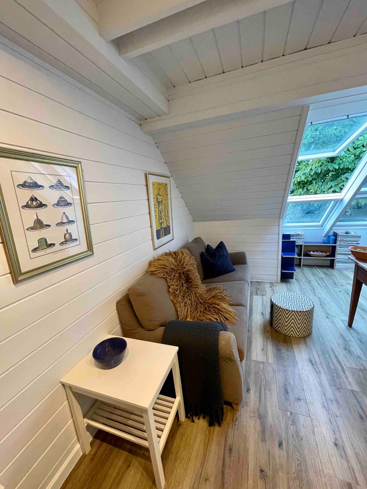 Baja los hombros y reemplaza el ruido del tráfico con gallinas y ovejas rotas. Amplio loft sobre el edificio de garaje con un dormitorio amueblado con una cama doble y un loft con tres colchones. Cocina (renovada en 2024) con tazas y ollas, cafetera. Baño con ducha, lavadora y una terraza donde puedes disfrutar de tu café por la mañana con entretenimiento de los animales. Ovejas, gatos y gallinas sociales y aptas para niños que todo el mundo está feliz de recibir algunos abrazos. ¡A poca distancia a pie de tiendas, zona de baño, parada de autobús y una gran zona de senderismo!