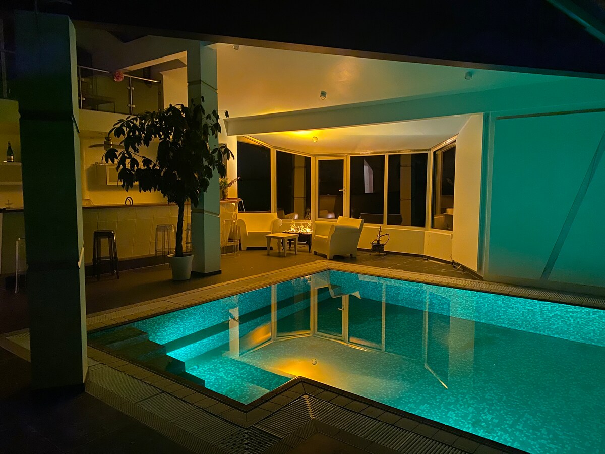 Usjenert. Fine turområder. Solforholdene er veldig gode og man har kveldsol på balkong. Stort uteområde under tak og med varme i taket. Oppvarmet basseng til 27° på 3,6 m bredde og dybde 60cm er tilgjengelig 5mai-31august Stor trampoline og volleyball/badmingtonbane. 1 km til nærmeste badebrygge i innsjø. Fint å gå ned på varme sommerkvelder. Det er fire køyesenger i hytta . Dobbelseng og sovesofa i anneks. Sommerparadis