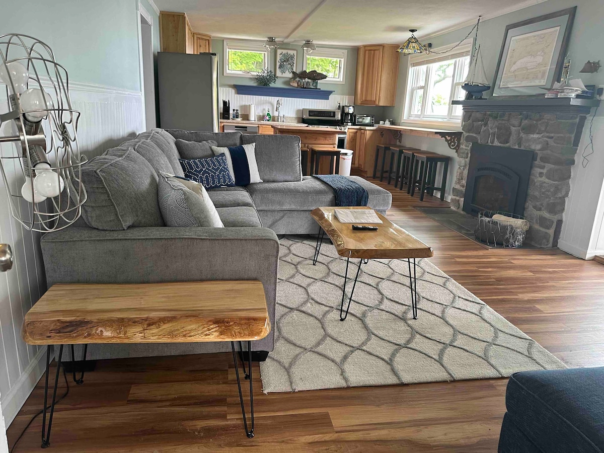 Bienvenido a Sunset Serenity. Ubicado a orillas del lago Ontario, relájate en este espacio tranquilo y elegante o disfruta de las puestas de sol de fama mundial desde el amplio patio trasero. Esta casa del lago recientemente remodelada ofrece todas las comodidades de estar en la ciudad, con la privacidad de unas vacaciones aisladas. Esta propiedad cuenta con dos amplios dormitorios, ambos con camas tamaño queen, un elegante baño con acabados de azulejos modernos y lo más destacado de este interior: el salón y la cocina de concepto abierto.